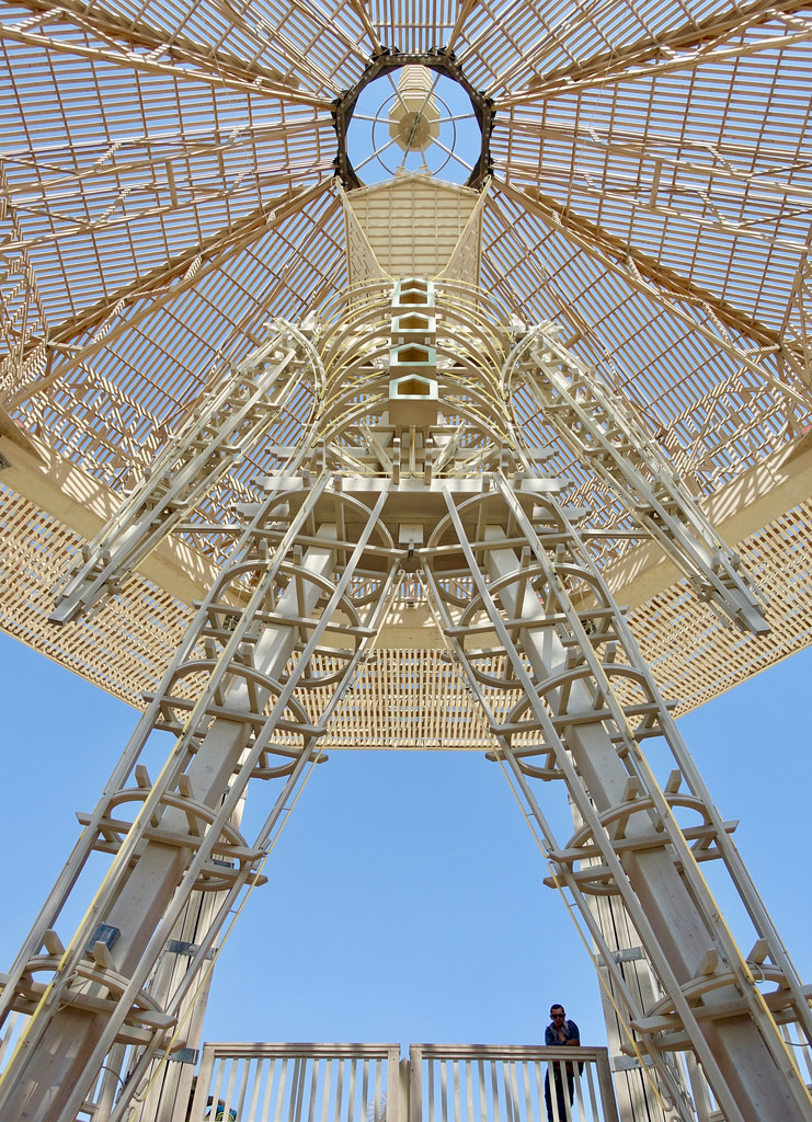 К счастью, мы в меньшей степени зависели от лагеря, так как приехали на своём транспорте. Лагерь, по сути, предоставил нам место и электроэнергию, чтобы кондиционер работал внутри. Но должен сказать, что кондиционер внутри RV охлаждает ровно на 20 градусов по сравнению с улицей. То есть почти всё время там было +50, а внутри фургона было +30. Это лучше, чем ничего, при такой температуре за бортом и +30 спасение. Хотя все говорят, что это был самый жаркий Burning Man за многие годы. Обычно +40 и +20. Мы спасались в фургоне, хотя спали там часов 5 в сутки – днём».