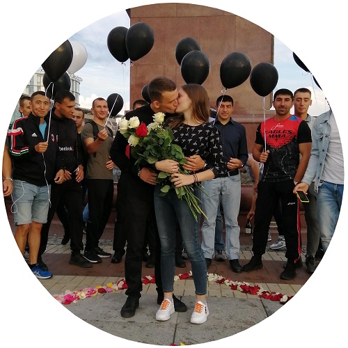 В августе прошлого года житель города устроил на площади Победы флешмоб для прохожих, чтобы сделать предложение своей девушке. Парень попросил их держать надпись «Твоя жизнь скоро изменится», а затем провёл возлюбленную через «живой лабиринт». В его центре находилось сердце, выложенное из лепестков роз. Там калининградец преклонил колено и достал кольцо. Девушка не устояла.