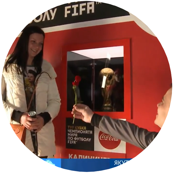 Ещё одним необычным местом для предложения руки и сердца стал шатёр кубка FIFA, который привезли в Калининград перед ЧМ-2018. Молодой человек преподнёс кольцо в тот момент, когда пару фотографировали на фоне трофея. Он опустился на колено и попросил стать девушку его женой. Эта история тоже завершилась хэппи-эндом, а сам момент попал в эфир Первого канала.