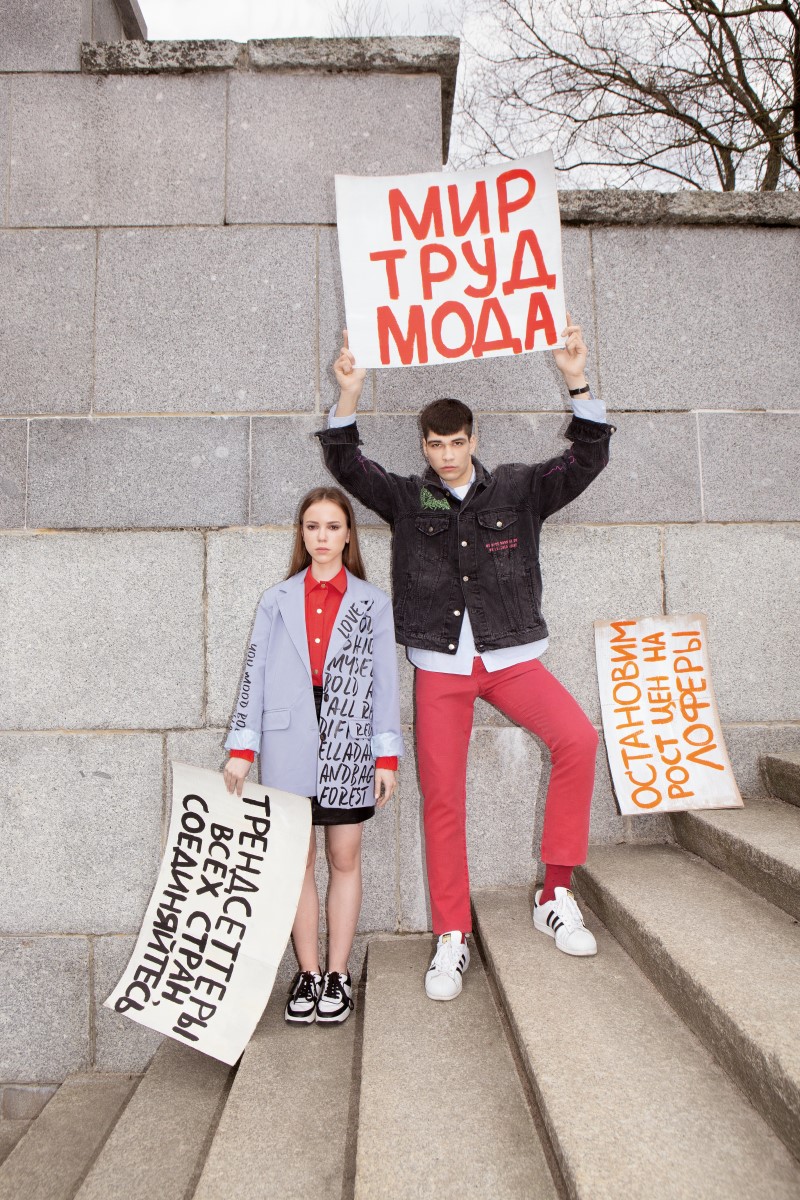 Во время майской демонстрации звонкие лозунги могут оказаться не только на плакатах, но и на вашей одежде. Так, принты на пиджаке мужского покроя станут отличным выбором, если вы устали держать транспарант. Темную джинсовку можно кастомизировать и организовать на ней надписи, которые вам необходимы. К тому же это экологично — вещи обретают вторую жизнь.