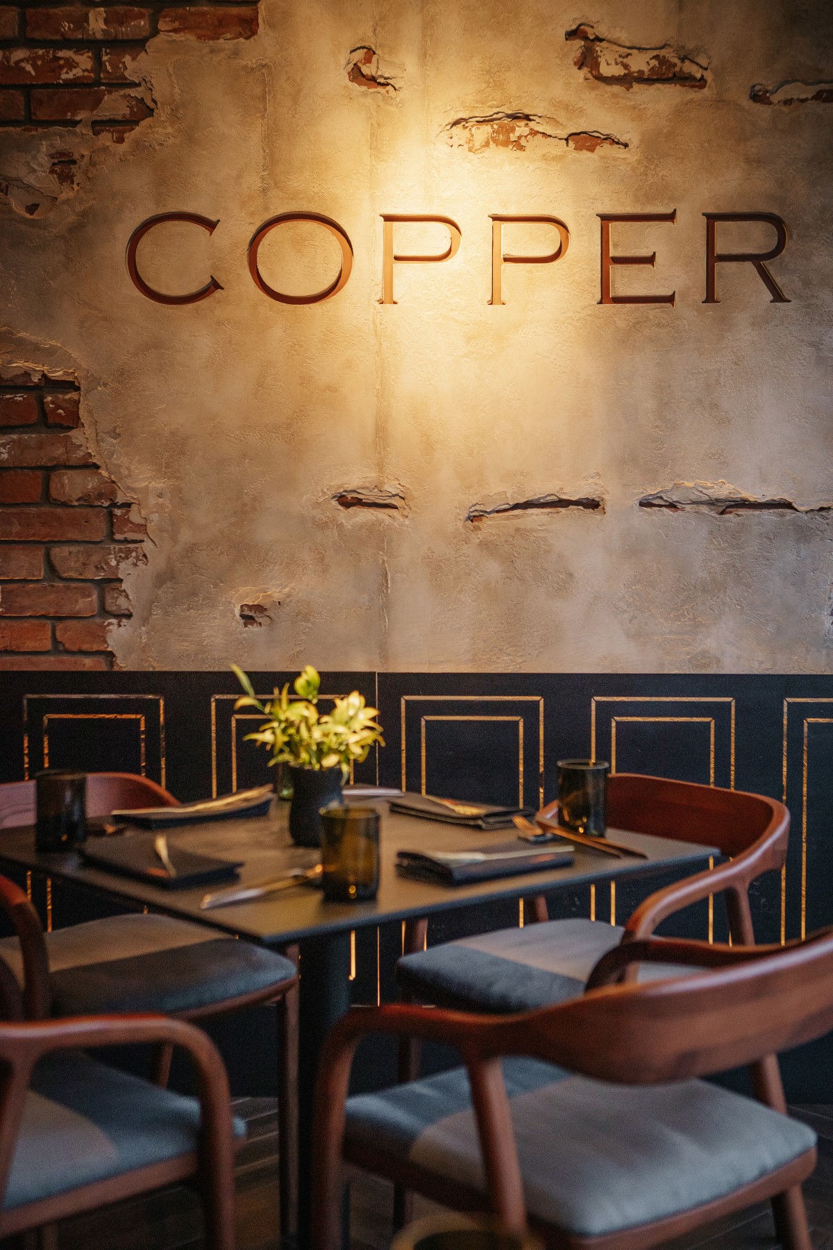 Александр Смирнов, управляющий: За новизной мы не гнались. Когда определялись с названием, выбирали между медью и brick, кирпичом. Остановились на первом варианте, пригласили дизайнера. Медь самый теплопроводный металл. Это полностью перекликалось с нашим рестораном: хорошая теплопроводность — суть сервиса. И чёткое отражение нашего посыла common food with art influence, то есть привычные продукты в искусном исполнении.
