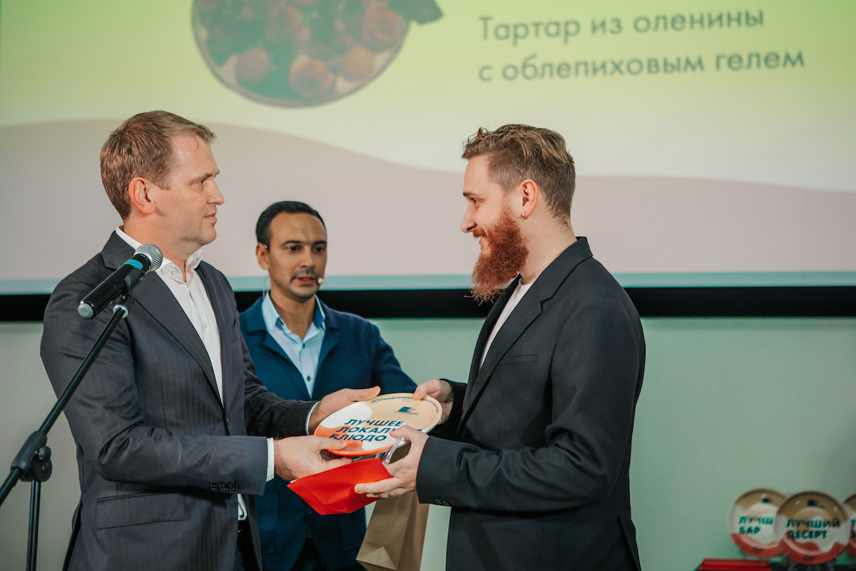 Директор Центра поддержки предпринимательства Калининградской области «Мой бизнес» Кирилл Лило поднялся на сцену следом, чтобы вручить премию за «Лучшее локальное блюдо». Тарелку получил ресторан «Соль» за тартар из оленины с облепиховым гелем. Конкуренцию ему составили блюда из Seasons, «Телеграфа», Hoffmann и «Усадьбы». За наградой вышел совладелец ресторана Павел Борисенко.