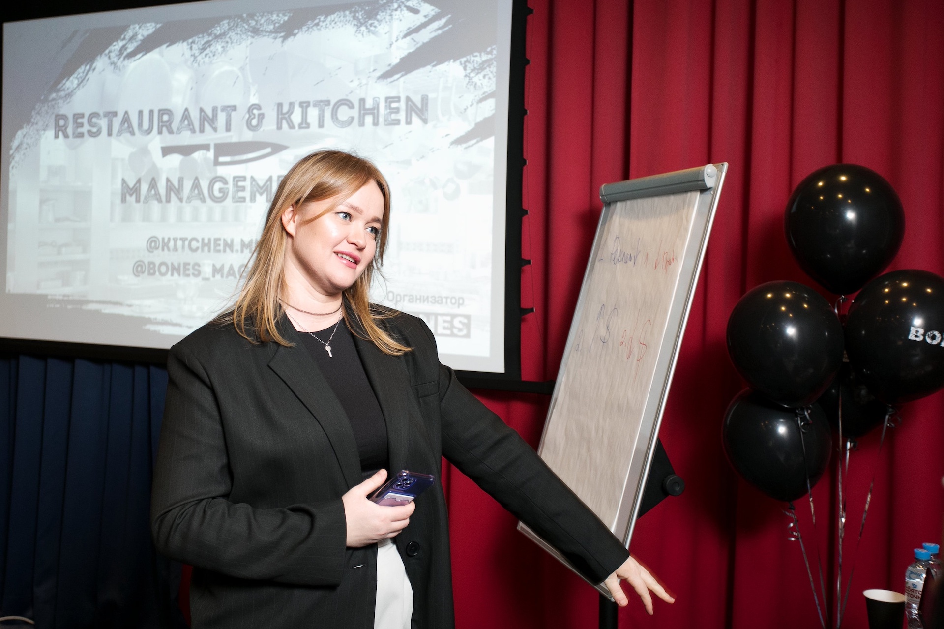Наталья Милеенкова выступила второй раз с темой «Управление расходами кухни». Главными фокусами внимания она назвала выручку, себестоимость и затраты на персонал. На конкретных цифрах Наталья продемонстрировала структуру расчётов и дала рекомендации по оптимизации. Ведь цель анализа хозяйственной деятельности – повышение эффективности работы предприятия. А последними спикерами стали шеф-повар митерии Chuck Рома Редман и совладелец «Chuck на Косе» Марк Добровольский. Они обсудили преимущества шефа-собственника бизнеса и наёмного сотрудника.