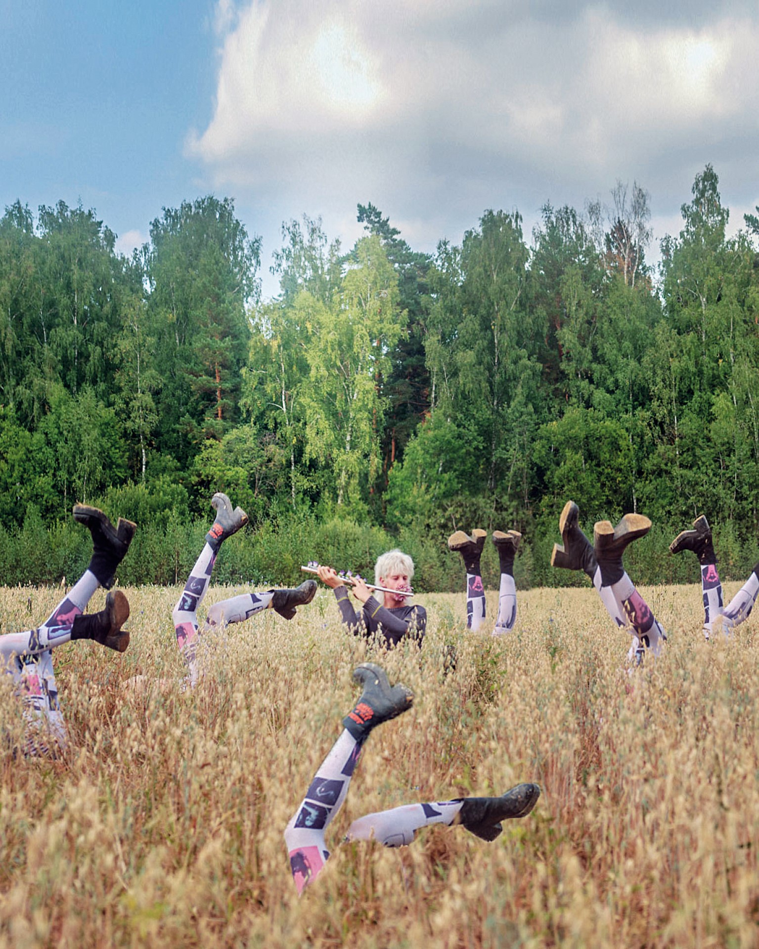 На площадке все работали вне материальных контекстов, вне мотивации получить деньги за съёмочную смену. Большинство моделей и ассистентов мы нашли через соцсети. Мы сразу объявили о наборе участников палаточного трипа и о возможности попробовать себя, проявиться, пожить на площадке, пообщаться и поработать. Так мы и получили некую горизонтальную структуру взаимодействия, когда один помогает другому.