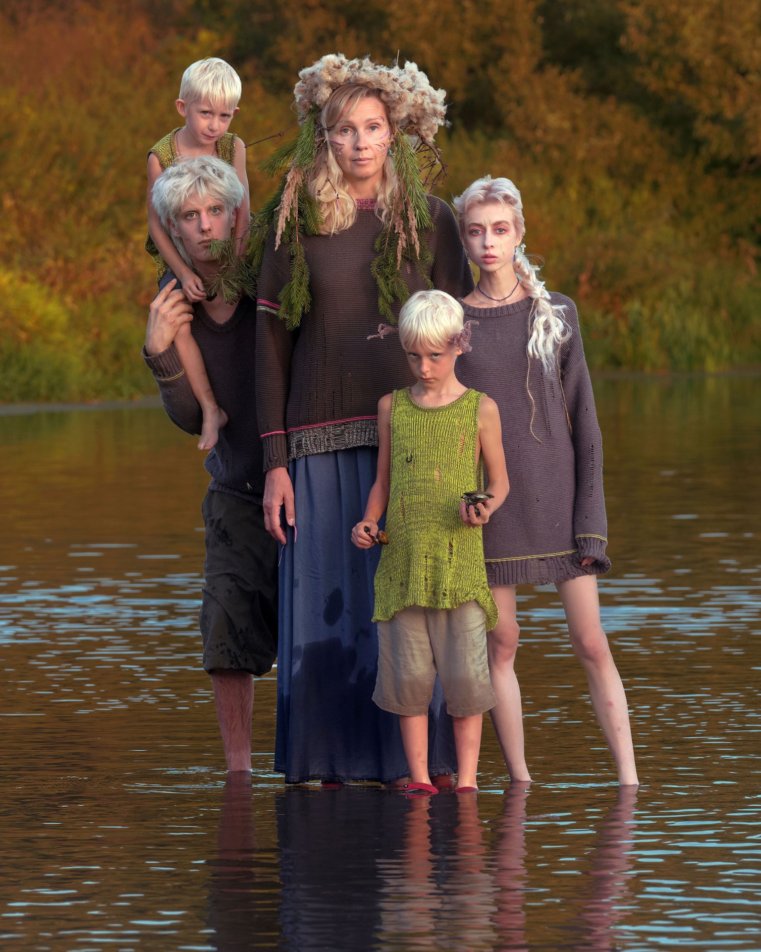 Изначально мы обсуждали фото, 2–3 героя и выездную съёмку в лесу. Без большого продакшена и без ночёвки. А потом всё разрослось в видеоисторию из 10 персонажей, в которой участвовало около 30 человек. Рассказ про племя людей, которые обособленно живут в лесу вне контекста современного мира.