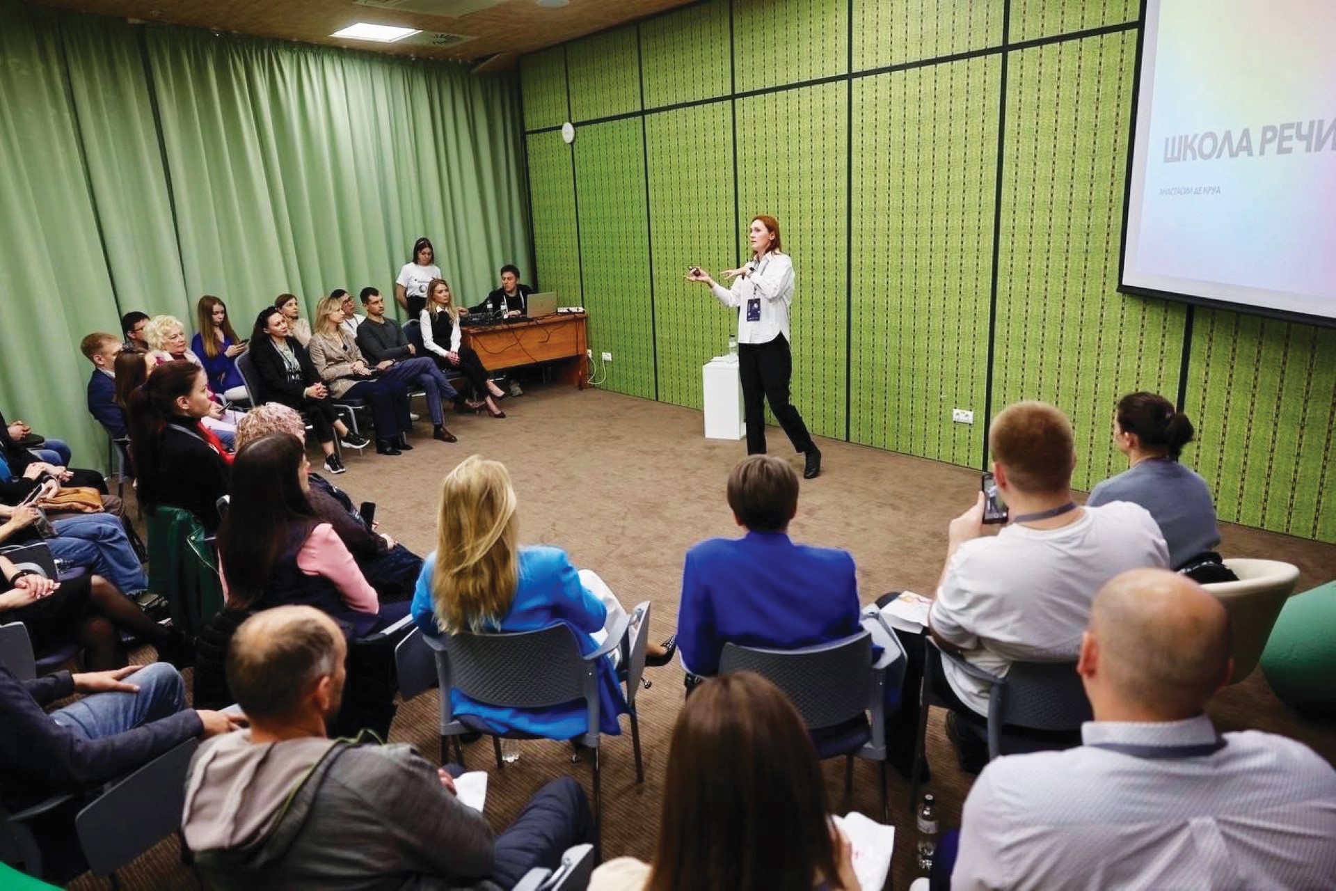 Есть несколько форматов. Основной — это индивидуальный курс по технике речи и публичным выступлениям. Он проходит со мной один на один, это полное погружение в процесс. Первая часть курса целиком посвящена физической работе. Мы вместе с учеником сначала осваиваем упражнения, а потом доводим до автоматизма. Важно понимать: чтобы сделать речь живой и красивой, нужно научиться владеть своим телом. Вторая часть курса — работа над структурированием речи. Человек должен быть убедителен не только в речевых коммуникациях, но и в смысловых.
