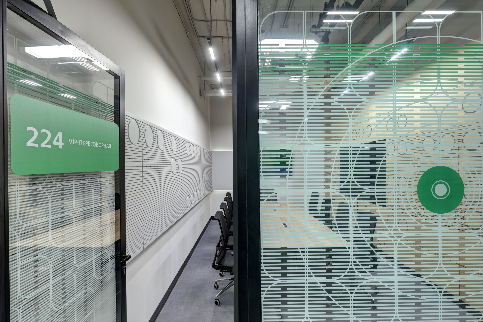 Фундаментальные перегородки уступили место лёгким стеклянным конструкциям, благодаря чему интерьер наполнился воздухом. Авторская графика на стекле повторяет кремниевые пластины с токоснимающим слоем и суточным графиком эклиптики.