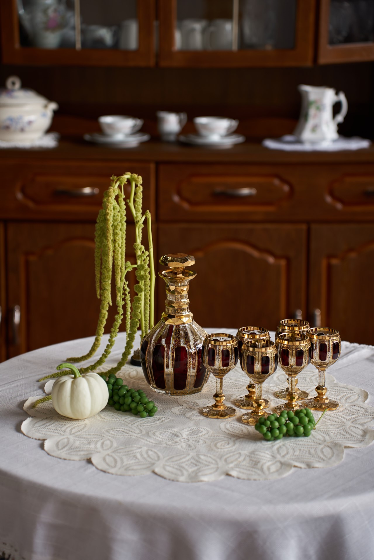 Набор из шести фужеров с ручной росписью золотом, Чехословакия, 1900–1920-е годы