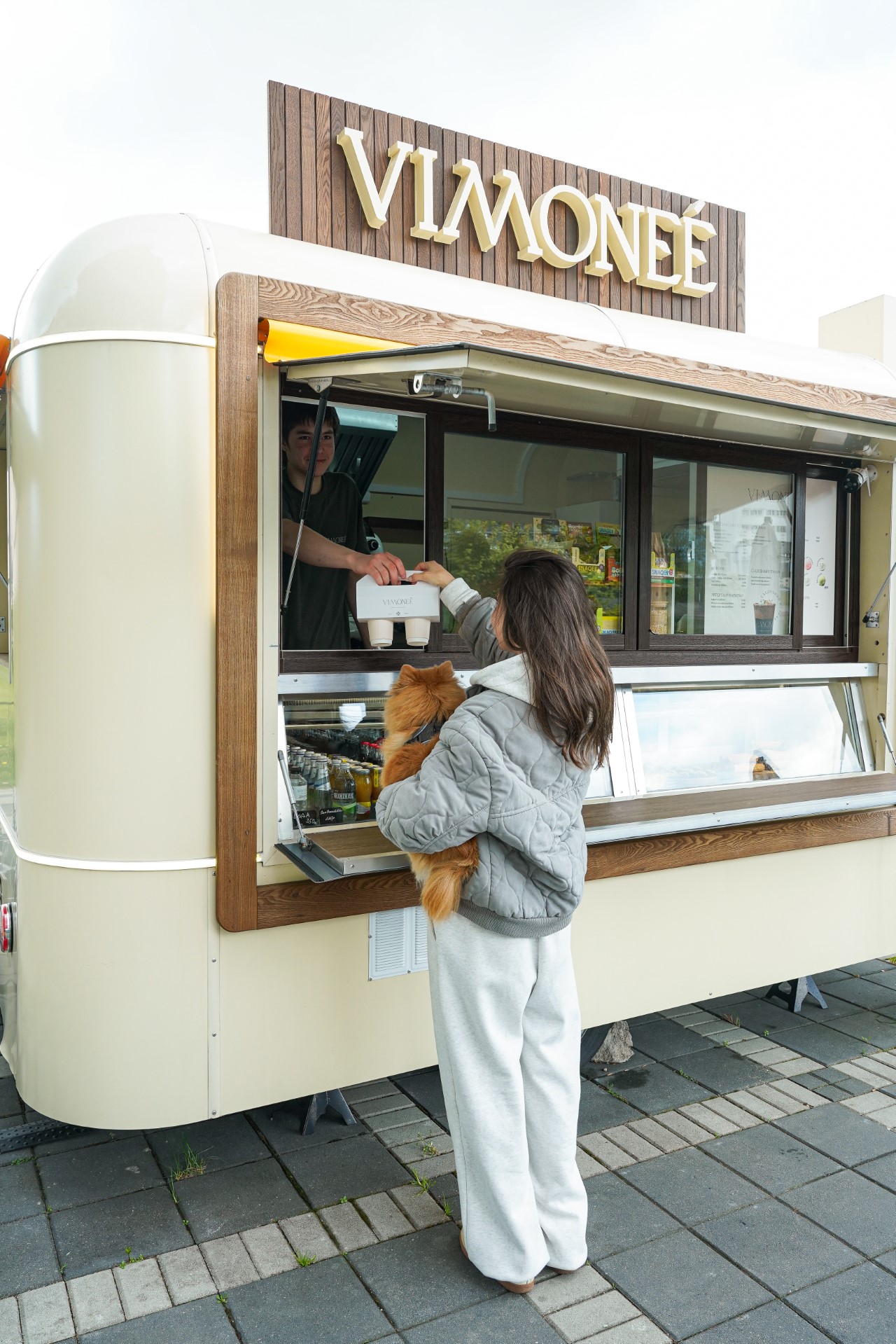 Комфорт тоже важен. Vimoneè — это кофейня в формате to go*. Обычно около таких кофеен не бывает мест для размещения. Мы сразу решили построить столы и скамейки, чтобы гости могли выпить кофе, пообщаться и попробовать наши десерты не на ходу, а в комфорте и спокойствии.