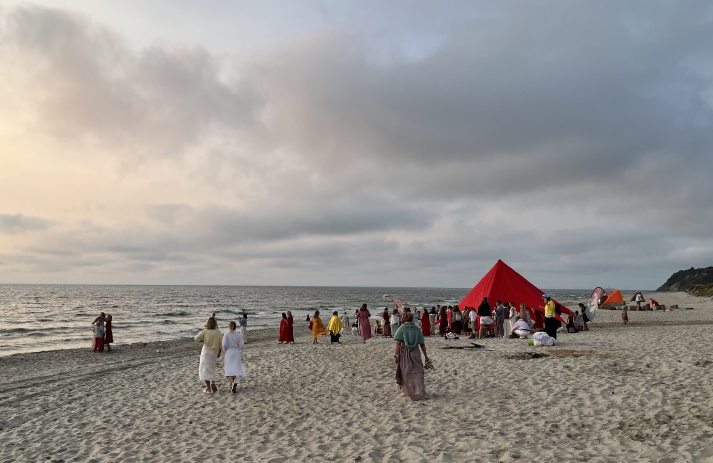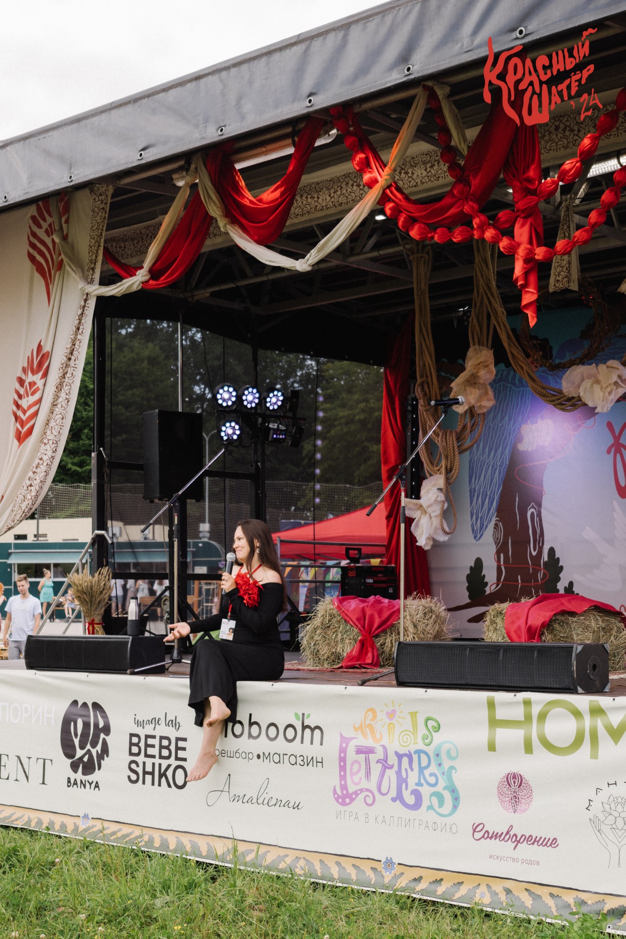 Первый «Красный Шатёр» был организован летом 2022-го буквально за месяц и собрал 70 гостей. Локацией выбрали Витланд. У нас была основная площадка в классном рукотворном декоре, детская зона, баня, ярмарка. Получилось круто, все были в восторге. Название проекта — образ из истории по библейским мотивам, где женщины общины собирались в красном шатре, куда не допускались мужчины. В шатре рождались дети, а мамы, бабушки, тёти и сёстры заботились друг о друге, беседовали, занимались рукоделием, делились мудростью.