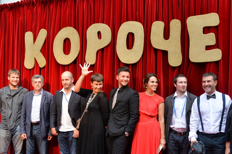 На красной ковровой дорожке фестиваля «Короче» в 2014 году. Евгений Гальперин - третий слева.