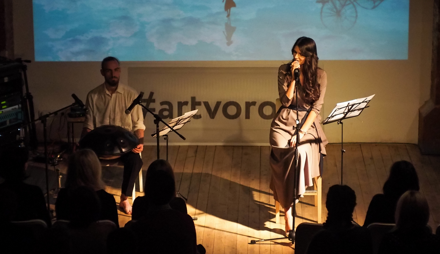 Катарина начинает выступление минут на 15 позже заявленного с театрального прохода по залу под аккомпанемент ханга — этот инструмент оказывается идеальным сопровождением для поэзии Султановой — и начинает со стихотворения «Бабочка просыпается». На финальных его строках - «Тех, кого любят, обязательно ждет рассвет» - зал взрывается аплодисментами, которых в этот вечер будет много. Катарина постоянно ведет диалог со зрителем: о необходимости путешествий к своему внутреннему морю, искусстве задавать правильные вопросы, слышать ответы, игре в себя и в людей, желаниях, погоне за правдой, необходимости взрослеть и прощать.