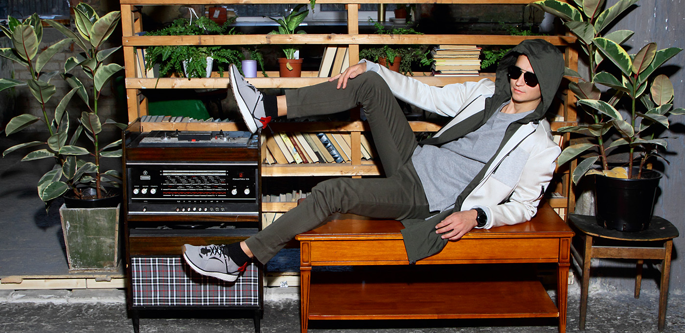 Этот лук - воспоминания о моем «хип-хоперском» прошлом. Все оверсайз, надевается друг на друга. Джинсы купил в Гдыне, а ветровку в Ирландии - там континет весь зеленый, и я был под впечатлением от этого цвета. Бомбер подарили друзья на день рождения в прошлом году. Очки из аэропорта в Дубае, часы из Италии. А кроссовки мне тоже подарок-от жены: она хотела, чтоб я был очень модный.