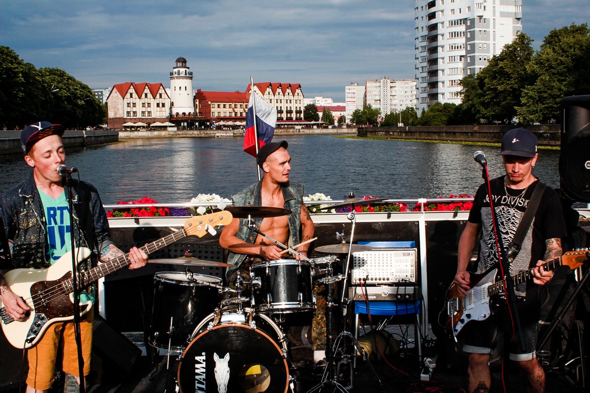 По Преголе проносятся и идут тихим ходом катерки и другие малые суда, наше же слышно издалека – сейчас там ВИА «РАКЕТА» рубит рок-н-ролльные хиты, которые вот-вот сменит регги. Любопытные прохожие отклоняются от своего маршрута, слетаясь на звук. Некоторая часть из них принимает решение на месте и ждёт своей возможности взойти на теплоход, отправившись в музыкальное плавание. «Всем, кто на берегу, хорошего настроения! Присоединяйтесь к нам, сейчас мы отправимся в следующий рейс», – объявлят в рупор дредастый парень, которого калининградцы знают как вокалиста коллектива DreadArk Sound System. С этой группой нам и предстоит открыть своё плавание.