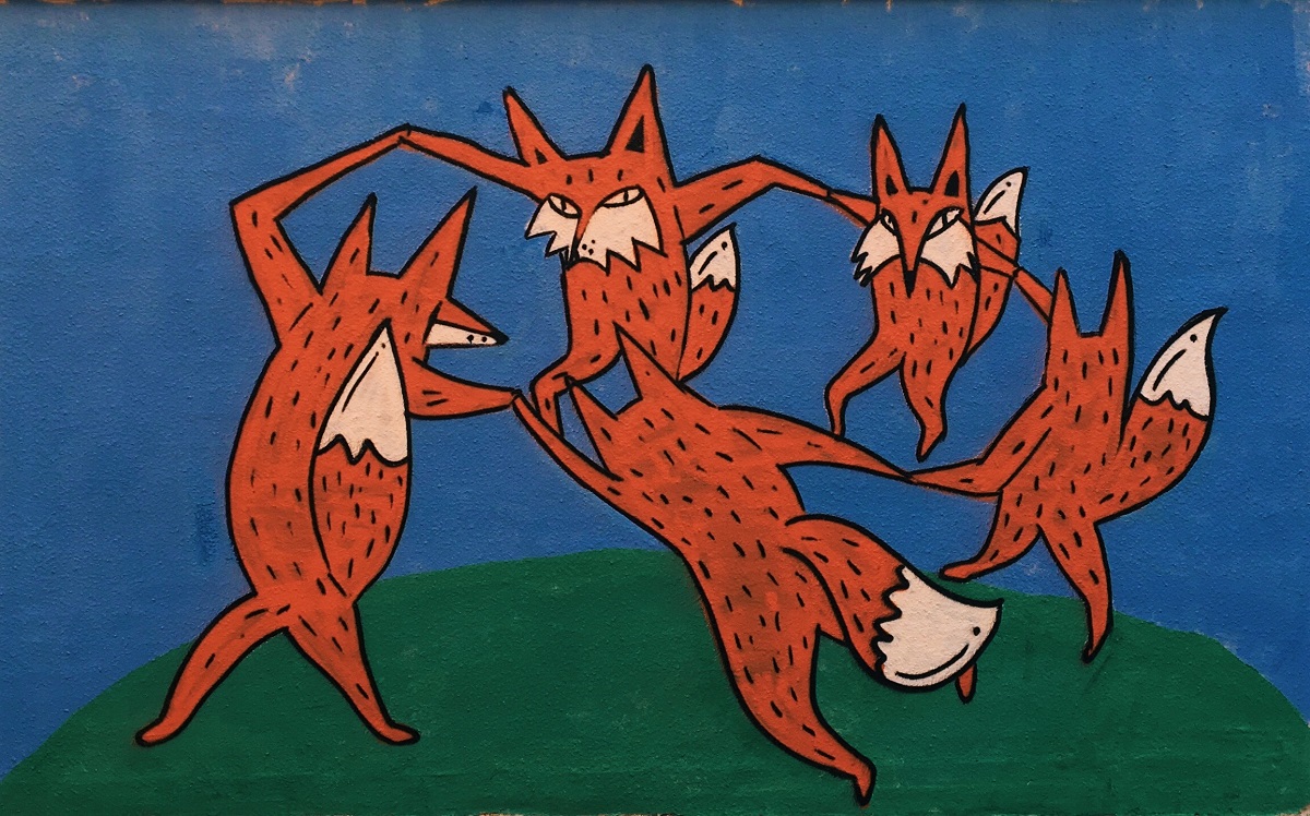 Держим путь на улицу Носова, 11. Там можно обнаружить интересный стрит-арт объект одного из самых известных калининградских райтеров @kldfox39, ведь его лисы встречаются в городе практически на каждом шагу. На стене возле дома № 11 он переосмыслил сюжет картины Анри Матисса «Танец».