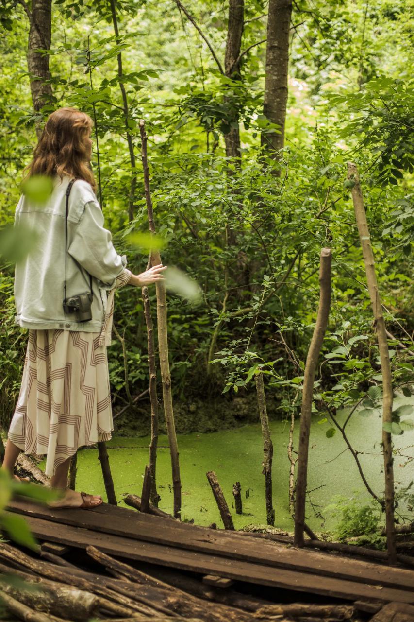 Кстати, сам лес, через который мы держим путь, называют «калининградской Амазонией» — из-за немецких канальчиков, болотистой местности, оставшейся в наследство от пролива Брокист, и яркой зелени. Гуляя по лесу, можно встретить остатки домов, колодца или глиняный черепок — у немцев здесь было селение Шветлунд, центр курортной жизни, где стояли рыбацкие домики на сваях. Хотите узнать больше — договоритесь об экскурсиях напрямую с Натальей или в сообществе «Народный экскурсовод».