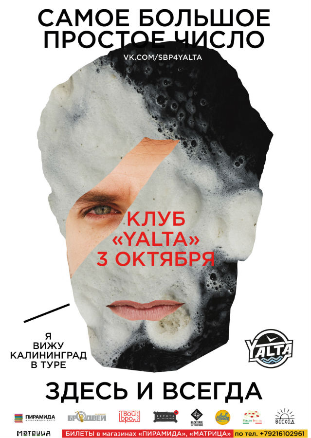 Концерт группы «Самое большое простое число» пройдет 3 октября в клубе «Yalta». Билеты поступают в продажу 17 августа.