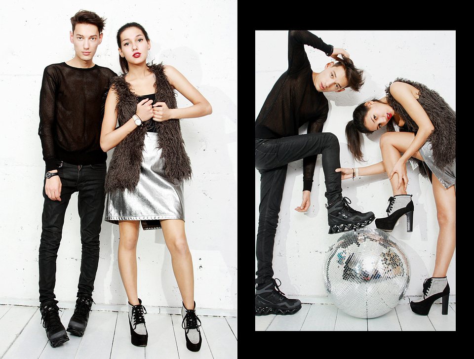 Сабина: Мне очень нравится, что юбка отсылает нас к стилю 90-х. Во-первых, это сейчас модно, а во-вторых, я обожаю период с 70-х по 90-е годы - для меня это лучшее время в моде. Высокая платформа - это тоже прекрасная вещь, хотя меня нечасто можно застать на каблука, но чувствую себя я в них очень уверенно.