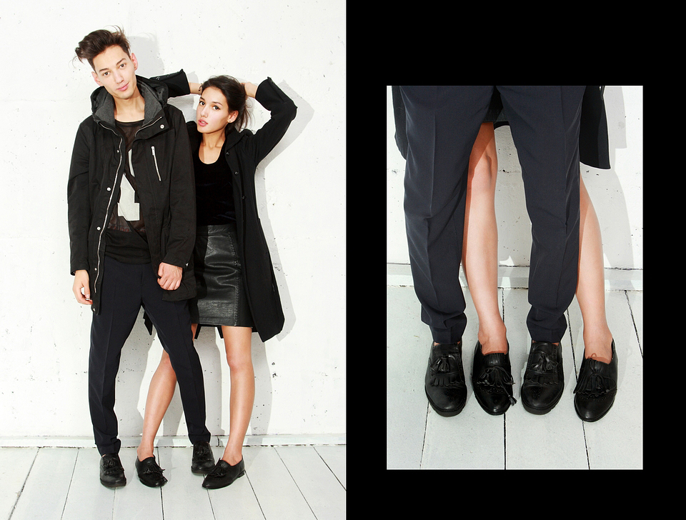 Сабина: Я - молодой режиссер, и когда пишешь сценарий, персонажи вдруг оживают, начинают взаимодействовать друг с другом. Выбирая одежду, ты также можешь играть с образами: женское переходит в мужское, белое - в черное. Наверное поэтому мне порой нравится надевать мужские вещи. Как, например, эти лоферы. В сочетании с черным пальто Nicole Farhi, кожей и бархатом они создают образ, который хочется примерить на себя.