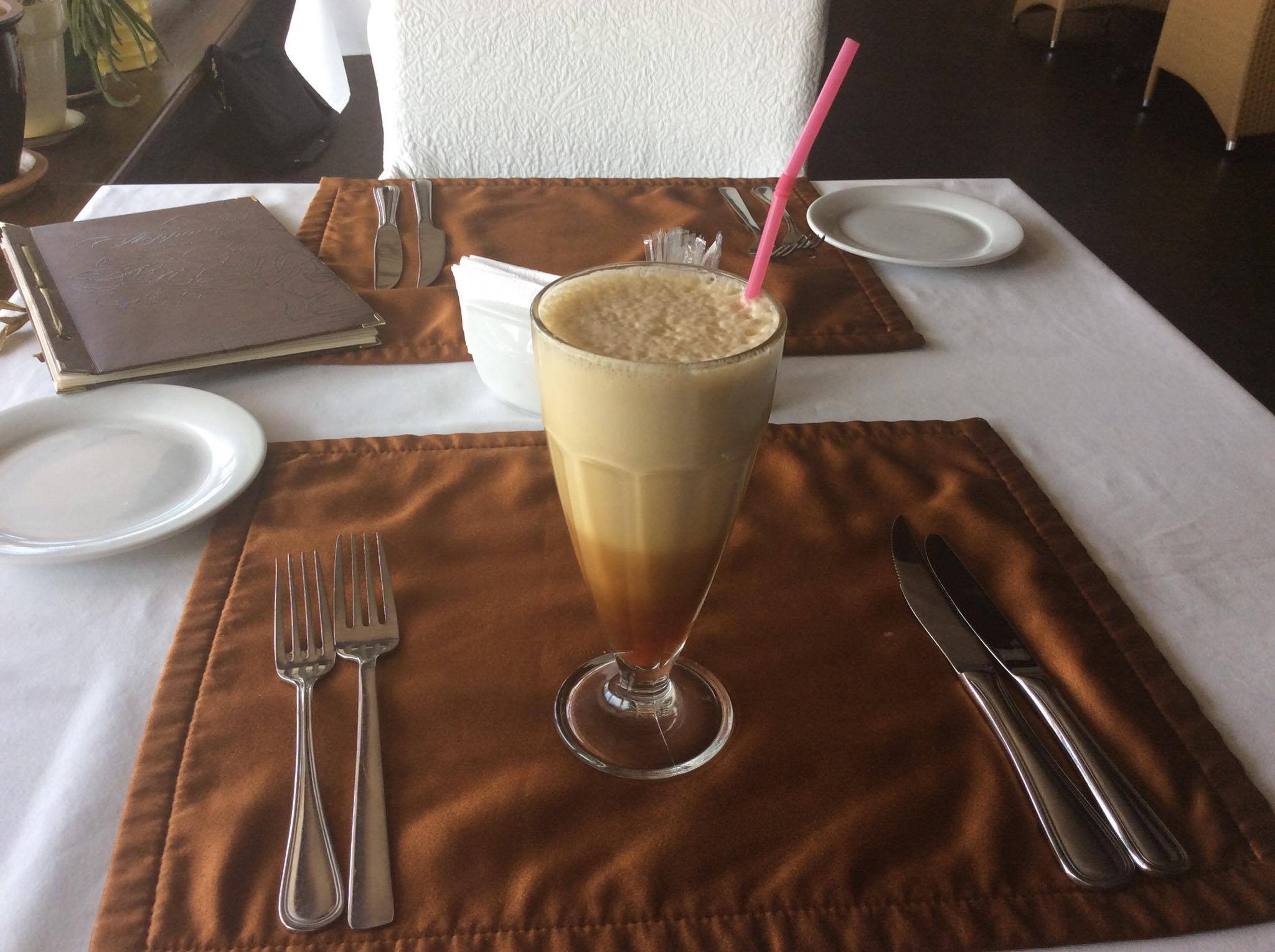 Внимательно выслушав мой заказ: фраппе, салат из кальмара с фетой на гриле, суп-гуляш «Паприкаш» и сербскую «Плесковицу», официант, заметно озадаченный, удалился. А я стал наблюдать за народом. Надо сказать, что посетителей не убавлялось. На места ушедших тут же садились другие, создавая впечатление, будто за дверями топчется очередь, как в столовую Моссельпрома в «Собачьем сердце». Получалось что по залу все время кто-то ходил, впрочем, дискомфорта это не вызывало - звучащая хорошая музыка (трансляция одной из радиостанций, кстати, наверное, незаслуженно не пользовавшейся у меня популярностью) помогала создать впечатление танцующих пар. И вот холодный кофейный напиток-фраппе у меня на столе. Причисляя себя к знатокам и ценителям кофе, я, тем не менее, признаю, что эта разновидность напитка не является шедевральной. Но в жаркий летний день - почему бы нет? Скажу прямо: мне он понравился. В меру охлажденный, с густой шевелюрой пены, где попадались крохотные частички шоколада, он прекрасно контрастировал с окружающей духотой, напоминая вкус растаявшего шоколадного пломбира за 15 копеек из моего детства.