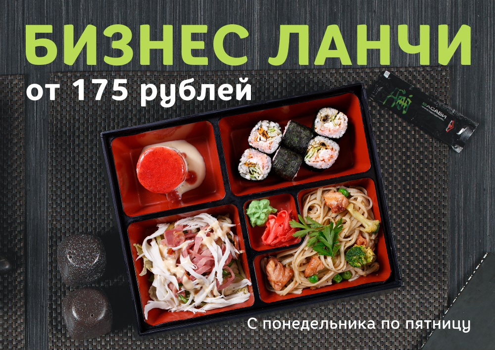 Позвольте себе сделать перерыв посреди трудового дня и насладиться вкусной едой по привлекательной цене — ланч от 175 рублей!