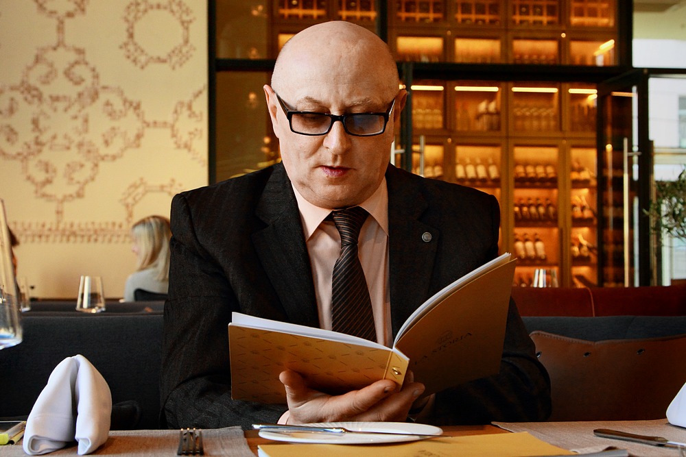 Я заказываю бургер из мраморной говядины с карпаччо из картофеля, соусом из белых грибов и ароматным трюфельным маслом, сыр Камамбер с белыми грибами, молодым шпинатом и яйцом пашот, а также капучино. Почему практически всегда заказываю капучино? Когда человек покупает машину, скажем, «БМВ», первый вопрос, который ему задают: «Чьей сборки?» Если баварская сборка, то это одна машина. Если «автоторовская» — другая. Просто я хочу оценить одно и то же блюдо в различном исполнении. Я всегда беру классический капучино, и всё мне становится ясно и понятно о заведении. Здешний кофе оцениваю высоко.