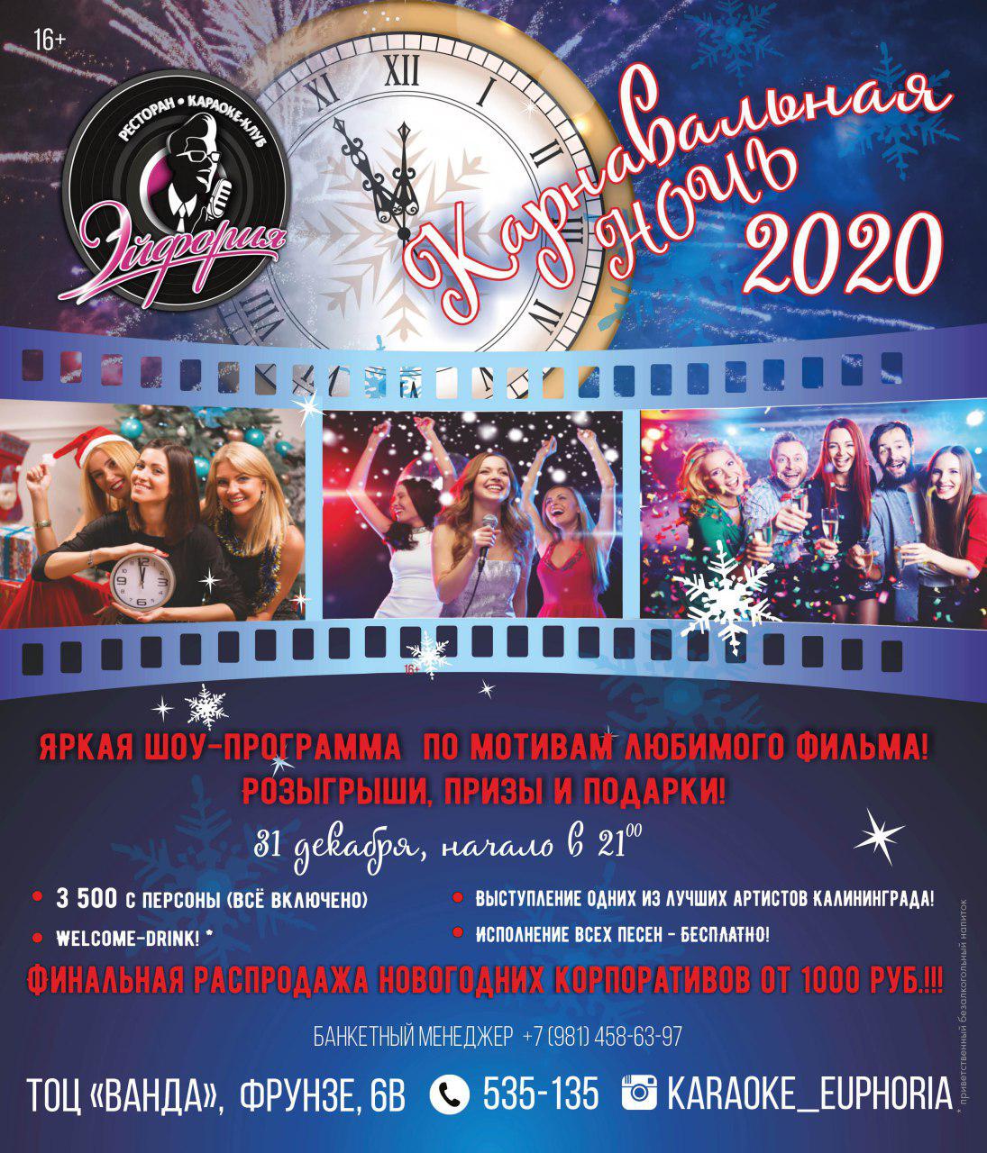 Караоке-клуб «Эйфория» предлагает окунуться в атмосферу карнавальной ночи по мотивам любимого фильма!