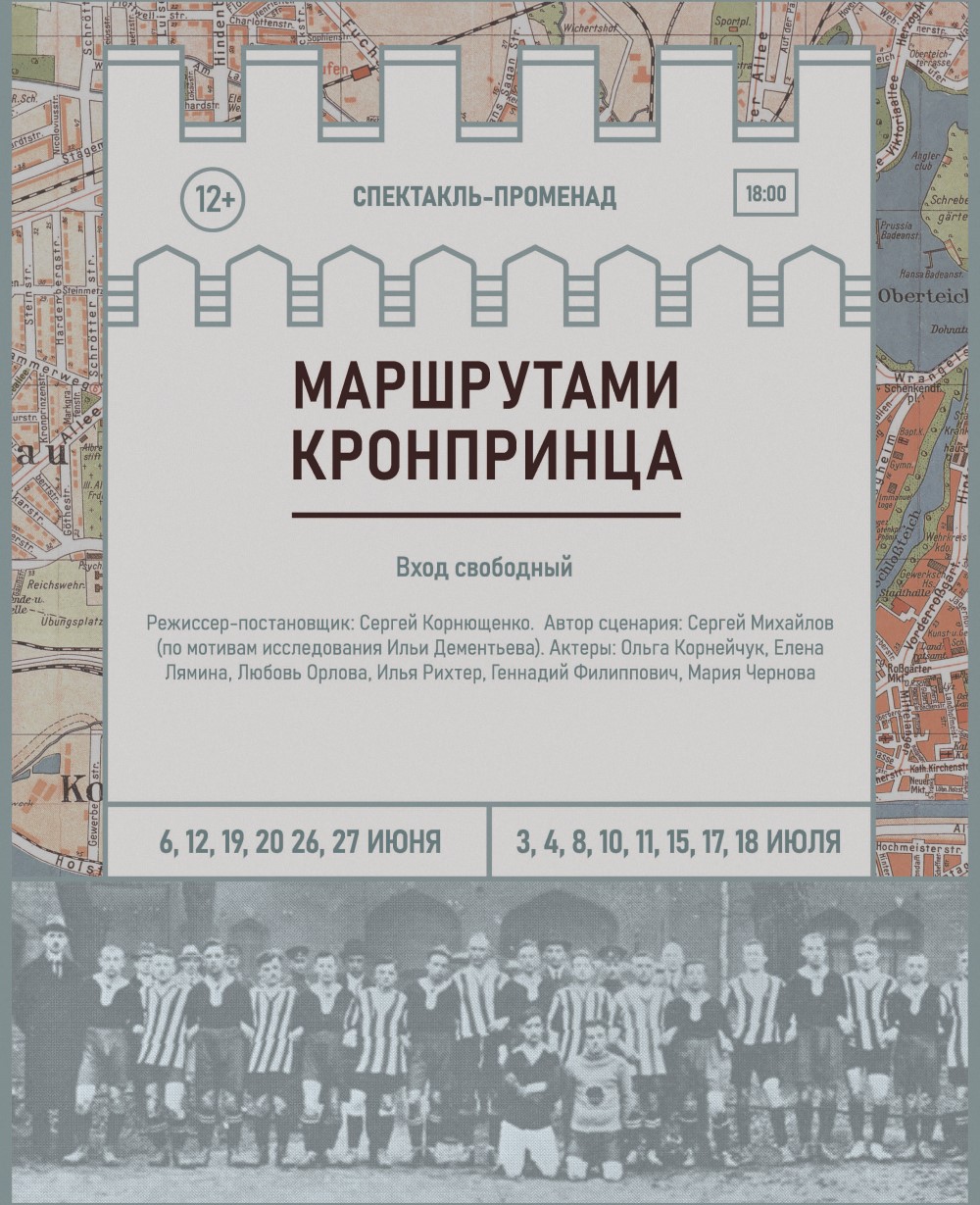ГЦСИ-Калининград представляет променад-спектакль «Маршрутами Кронпринца» — коллективную прогулку с элементами театрального действия. Спектакль создан в жанре мокъюментари. Протяжённость маршрута составляет 2,5 километра. Зрители пройдут по улицам и дворам, через пустыри и скверы, лежащие в пределах бывшего кёнигсбергского района Росгартен. Создатели «Маршрутов Кронпринца» погружают зрителей в историю района, «воскрешают» его жителей, среди которых есть и знаменитые, и давно забытые люди искусства и науки, такие как, например, писатель-фантаст Сергей Снегов, художница и скульптор Кете Кольвиц или музыкант Сабак Эль Хер.