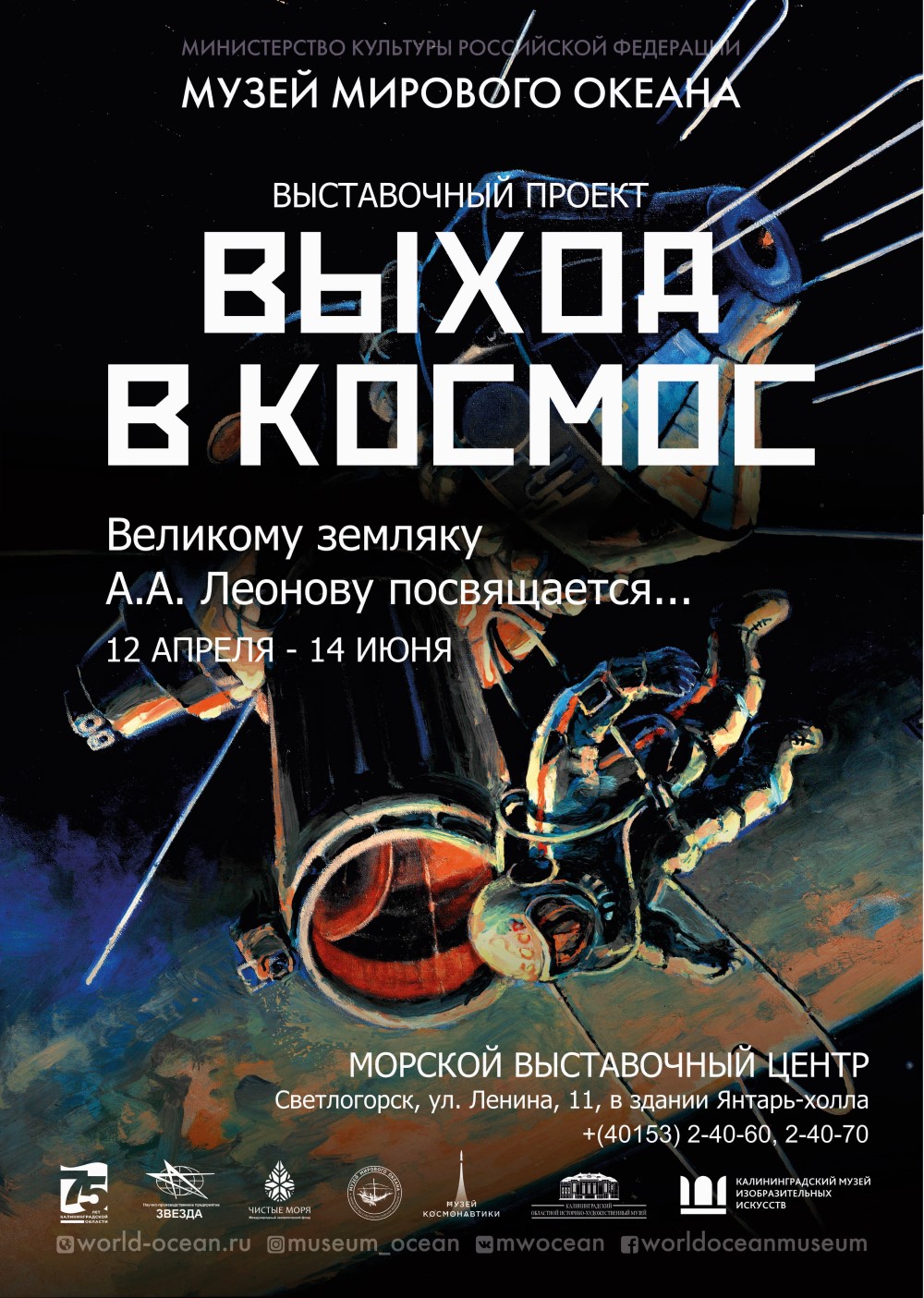 Музей Мирового океана в сотрудничестве с научно-производственными предприятиями Москвы и музеями Калининградской области представляет новую выставку. Она расскажет о мировой эпохе покорения космоса, которая началась именно в нашей стране. Посетители выставки «Выход в космос» увидят личные вещи Алексея Леонова, макеты спутников и скафандров, картины из Мемориального музея космонавтики и фотографии с борта МКС.