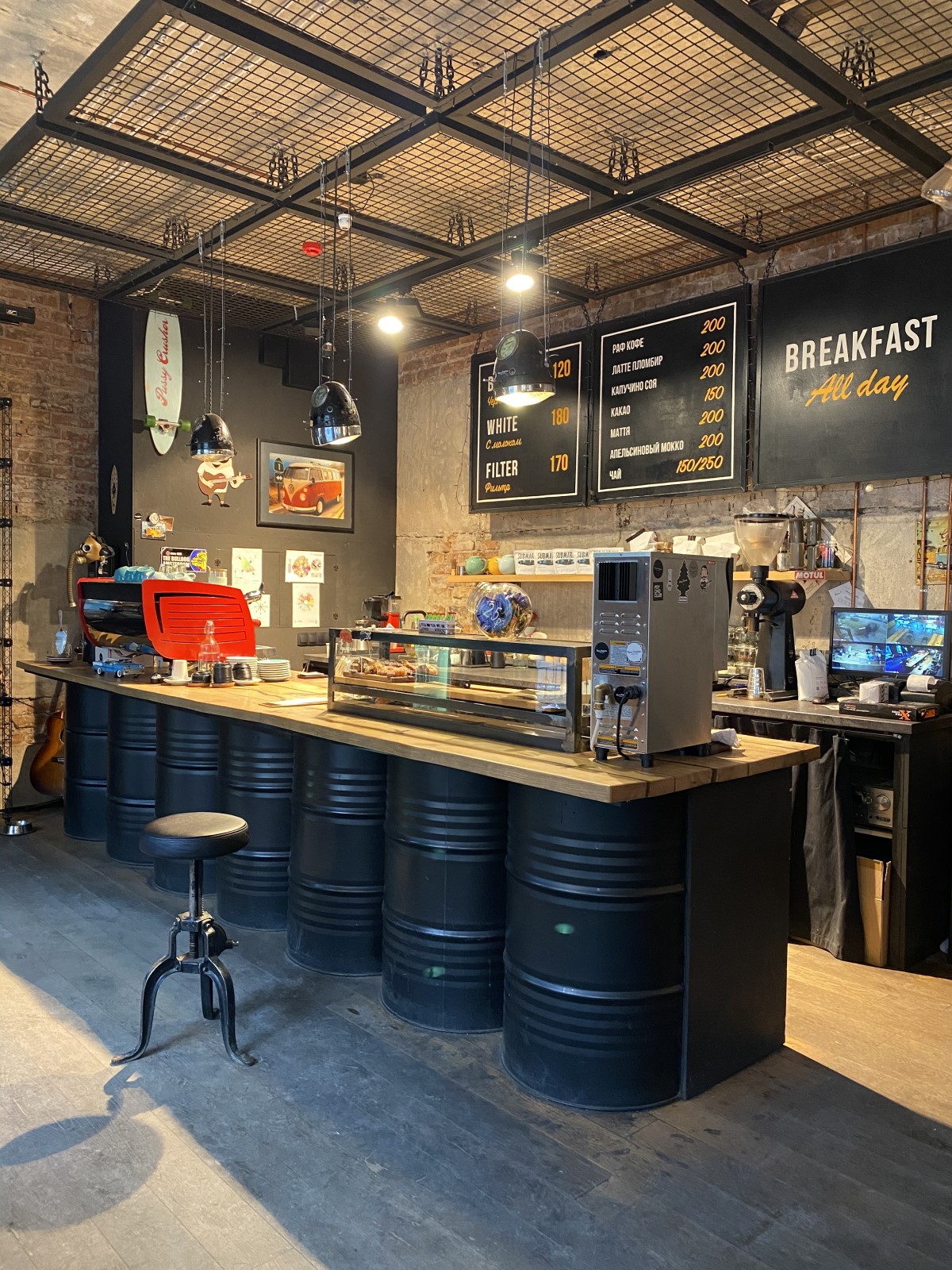 Небольшая кофейня от создателей кафе «Дача» расположилась на автобусной остановке, на перекрестке улиц Советской и Железнодорожной. Внутри есть пара посадочных мест, туалет и целая терраса с перспективой на лето. Владельцы нового заведения не изменили себе и создали очень приятную обстановку. На витрине лежат сэндвичи и профитроли, в меню значится великое множество напитков со сладкими топингами и сиропами, но чёрный кофе пока на слабую «троечку».