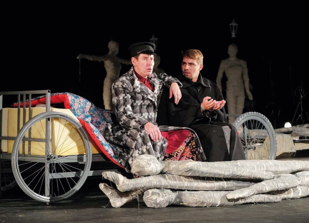 Вольная трактовка поэмы Николая Гоголя «Мертвые души» от Нины Садур. Спектакль переносит главного героя в Россию, дав ему в спутницы загадочную Незнакомку. Она обольщает Чичикова, обещая ему исполнение всех тайных желаний. Затем выманивает его из дальнего путешествия на родину, чтобы отдать во власть темных сил и разнообразной нечисти. Главный герой проходит через всю пьесу, окружённый туманом тайны и мистики, находясь на грани между жизнью и смертью.