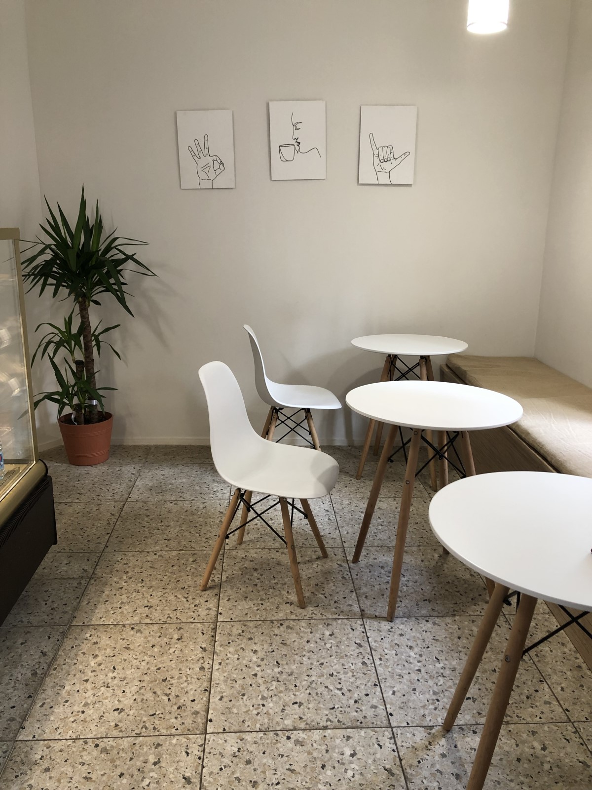На проспекте Мира в Калининграде, где кофейни расположены буквально в десяти метрах друг от друга, открылась ещё одна. Это заведение в белых тонах настолько минималистичное, что приближается к стерильности. Пока кофейня только открылась, и ей не хватает музыки, акцентных деталей и зелени (хотя в углу есть небольшая пальма). Пространство небольшое — всего три столика, поэтому контакт между бариста и гостями очень тесный. Меню такое же простое, как интерьер: кофейная классика и несколько неплохих авторских напитков. Цены не превышают 200 рублей. Десертов немного, но приятно, что это не размороженные чизкейки, а печенье и кексы собственного производства. Заведение специализируется не только на кофе, но и на фруктах в шоколаде. Клубнику или банан в глазури можно взять как дополнение к напитку или заказать целый набор.