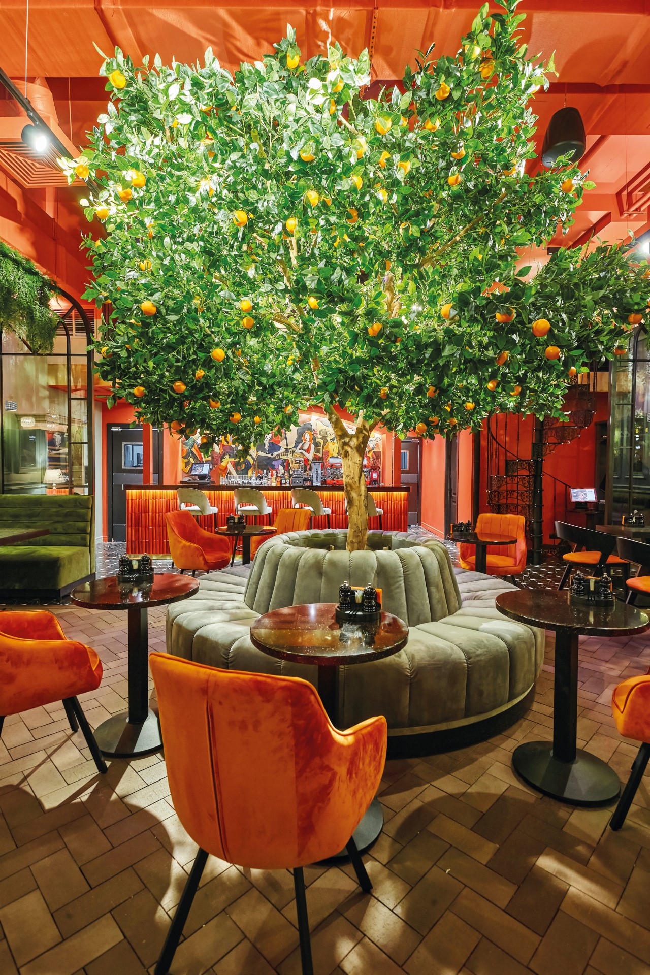 Одно из самых ярких гастрономических открытий 2022 года — рестобар «Мандарин», концептуальное пространство с авторским дизайном на улице Профессора Баранова. В центре зала находится мандариновое дерево, а на стенах — красочные картины, которые передают атмосферу летних ресторанов Греции, Испании и Италии.