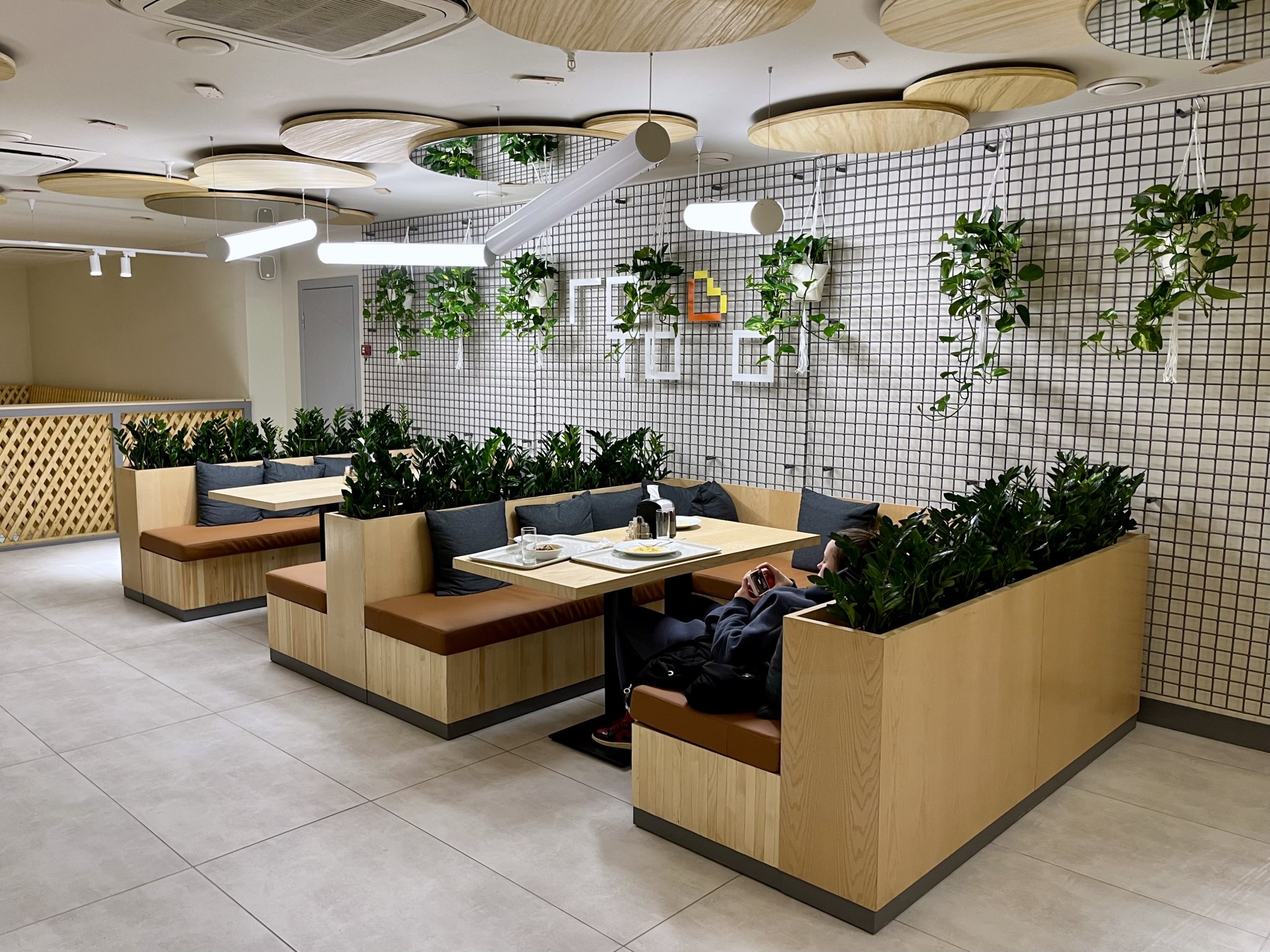 Новое заведение от создателей попавшего под снос кафе 1234 в Янтарном. По словам владельцев, главной целью было создать не кофейню, а место для отдыха и общения. Получилось стильное пространство с минималистичным дизайном, условно разделённое на три зоны. Места на диване позволяют удобно расположиться с чашечкой кофе и десертом. В центре зала расположен длинный стол, где можно собраться большой компанией или поработать за ноутбуком — каждое место оснащено розетками. Но самая уютная и медитативная зона находится у окна, где стоят два больших кресла. Ещё один акцент в интерьере — барная стойка из стеклоблоков. Вывеску и некоторые элементы декора для кофейни создал калининградский скульптор Владимир Янчарук (Negodiai).