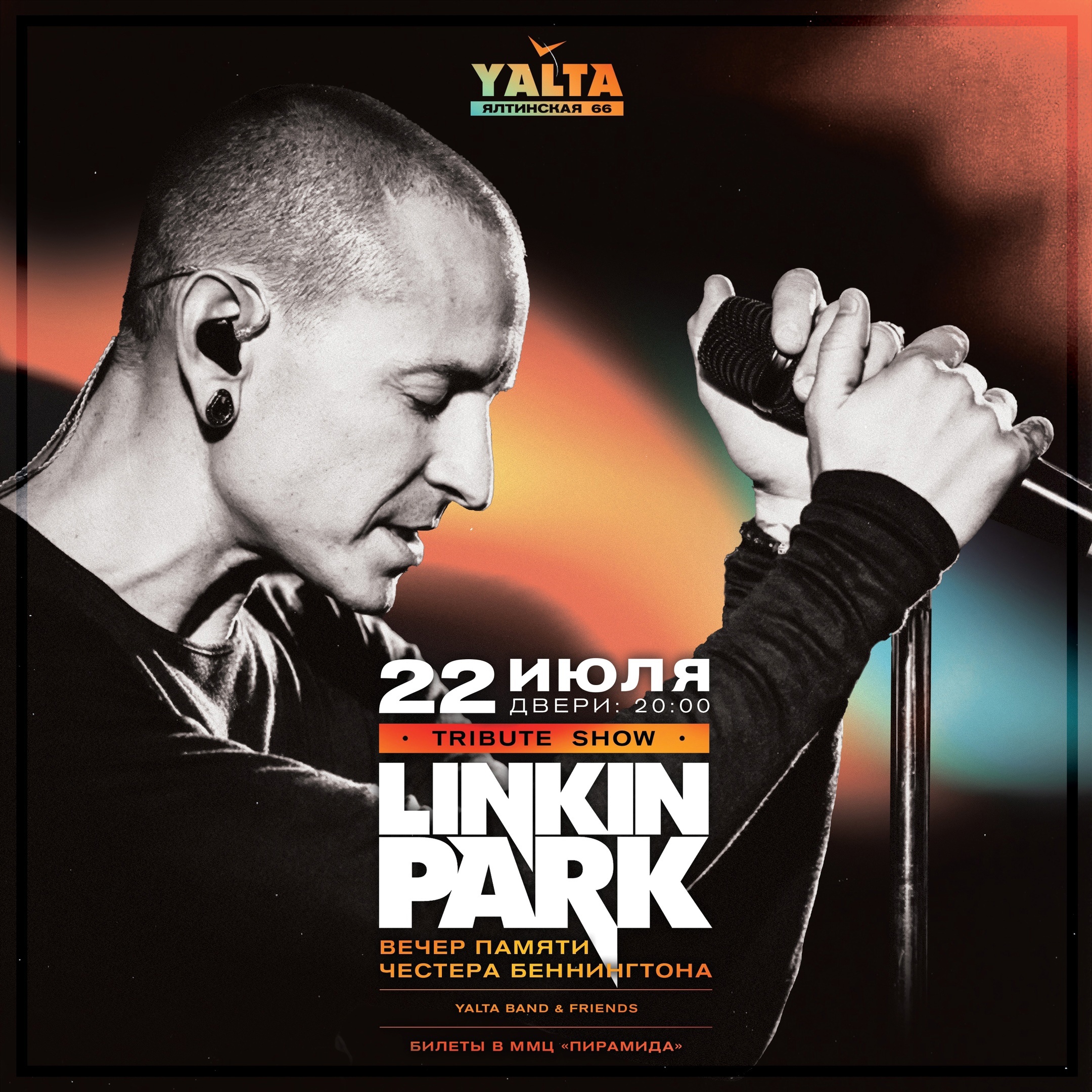 Вечер памяти Честера Беннингтона. Проведите незабываемый вечер, посвящённый одному из самых выдающихся рок-вокалистов всех времён. Linkin Park Tribute Show — это концерт, отражающий наследие Честера и его вклад в мировую музыку. В этот вечер на сцену выйдут вокалисты Yalta Band, чтобы показать все грани творчества музыканта. Зрителей ждут хиты Linkin Park и сюрпризы, подготовленные бэндом.