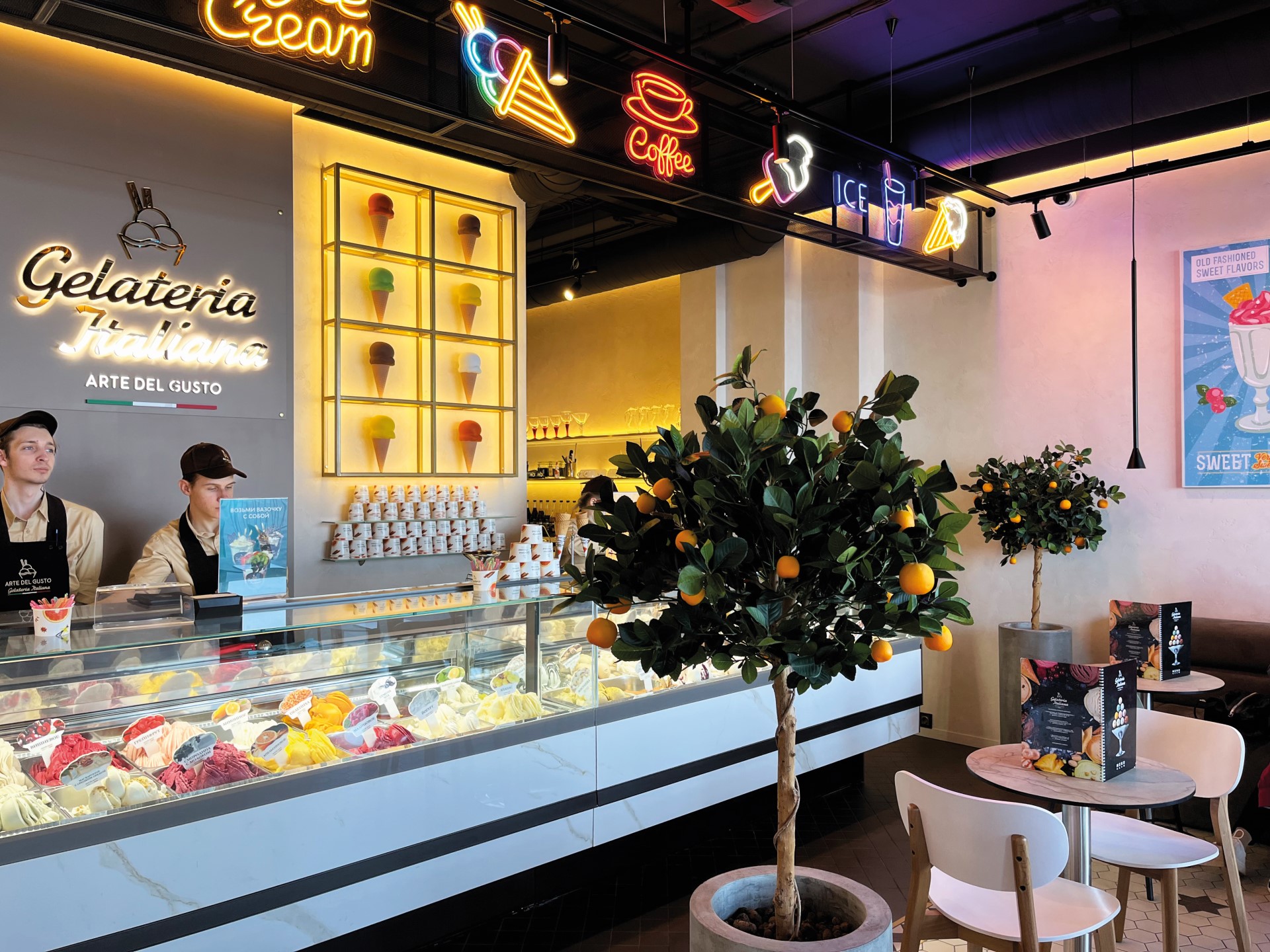 В последнее время в Калининграде и области появилось много желатерий. Небольшой ликбез: заведения с похожими названиями работают в торговых центрах «Европа», «Балтия Молл» и «Z-Форт», но не имеют друг к другу никакого отношения, несмотря на схожесть концепции и ассортимента. На променаде в Зеленоградске открылся «брат» желатерии из «Z-Форт» — Gelateria Italiana. Внутри 8 столиков, найти свободный оказалось сложно даже в прохладный день, а летом место наверняка будет пользоваться особой популярностью. В ассортименте мороженое и сорбеты собственного приготовления по цене 120 рублей за шарик, а также десерты и кофе.