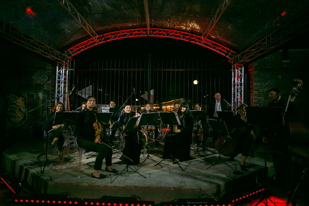 К 9 часам вечера возле входа во внутренний двор башни Врангеля начали собираться первые гости. Уже издалека было слышно, как областной симфонический оркестр исполняет хиты «Boney M». У ворот ждали секьюрити в солнечных очках, один из них был темнонокожим, — вместе они удачно косплеили культовую пару агентов из «Люди в чёрном». Где-то неподалёку двое мужчин жаловались друг другу, что не могут попасть внутрь. Действительно, теперь из-за коронавирусных ограничений фестиваль стал ещё более камерным — разрешено небольшое число гостей, вход только по приглашениям.