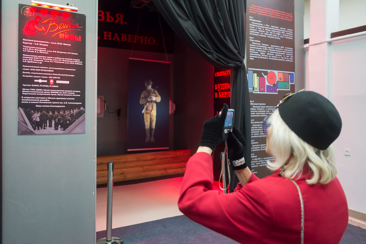 Первые посетители уже встретили в дополненной реальности героев-панфиловцев, вместе с летчиками полковника Преображенского нанесли бомбовый удар по Берлину, оказались на поле боя в битве за Москву и увидели голограммы настоящих Сталина, Жукова, Рокоссовского, Конева… Голограммы Гитлера, к счастью, нет.