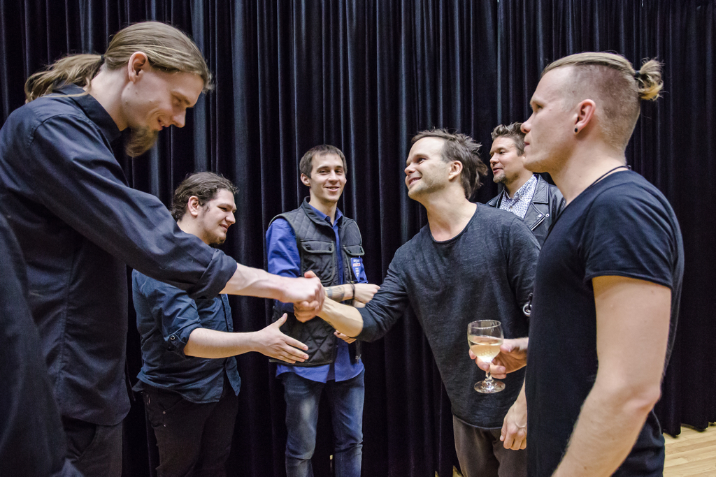 Только на последних минутах шоу The Rasmus нам сообщили, что в программе предусмотрены общение и фотосет с группой разогрева. После небольшого перерыва к нам вышли финны. Мы обменялись объятиями, благодарностями и комплиментами, The SLOE подарили свой мерч и взяли автографы у звезд. The Rasmus пожелали большого успеха нашей группе и сделали несколько совместных снимков на память. Порадовало их отношение и профессионализм — отработав два десятка концертов в туре, сразу же после шоу они вышли пообщаться, были очень очень позитивными и открытыми.