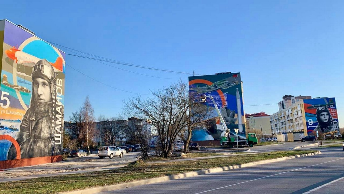 На улице Шаманова открыта самая большая галерея в Калининградской области. На 20-метровых торцах трех многоэтажек московские и местные художники изобразили летчиков-героев Великой Отечественной войны Эрика Гептнера и Ивана Шаманова, а также сцену атаки самолета на немецкую подводную лодку.