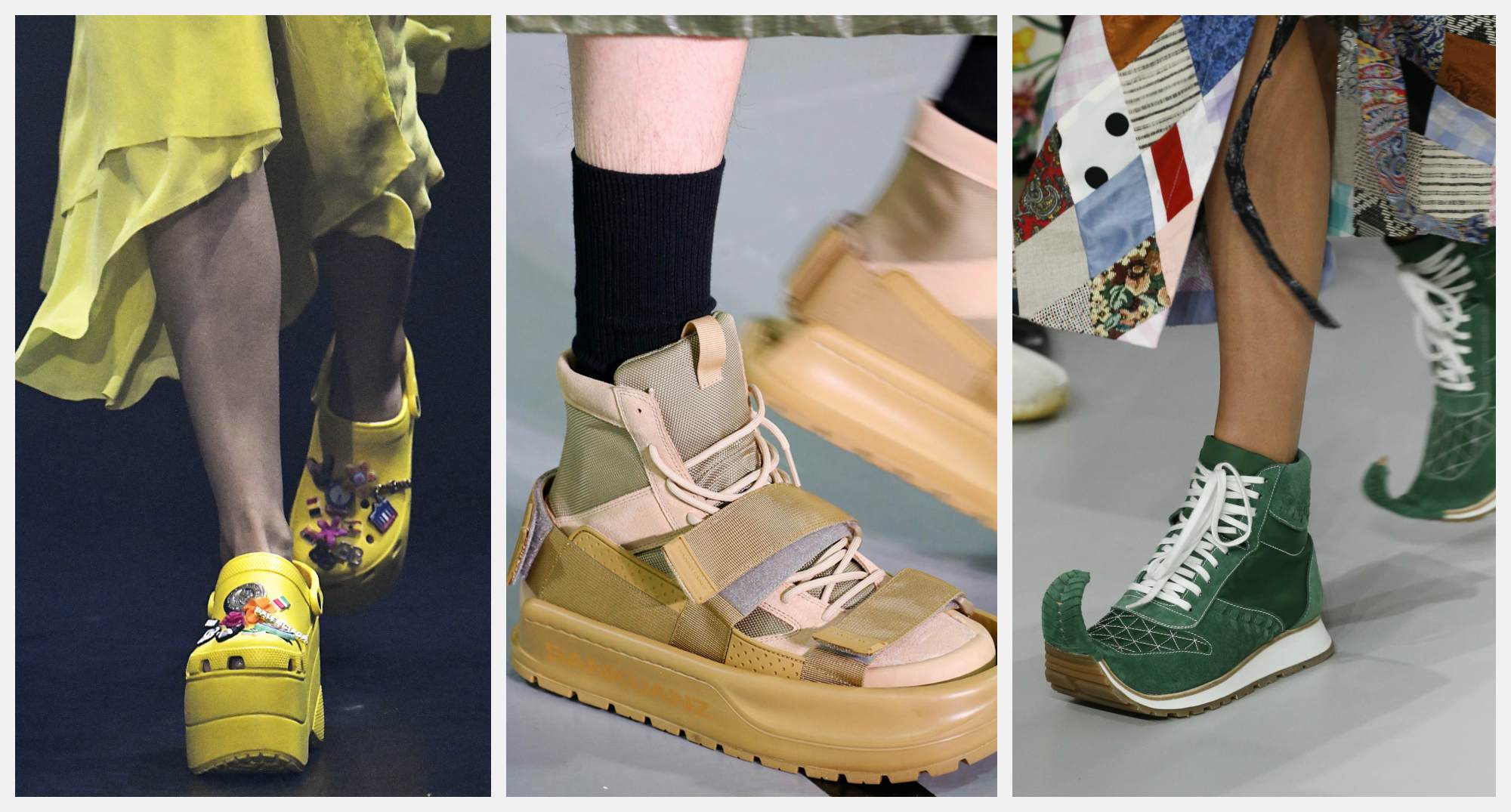 Тренд, который с каждым новым сезоном только укрепляет свои позиции. Выбирая уродливую парочку, присмотритесь к кроксам: именно их Christopher Kane украсил стразами, а Balenciaga – забавными значками и даже платформой. Если резиновому «кошмару» вы предпочитаете натуральные материалы, обратите внимание на кроссовки – мода на ugly shoes уже добралась до спортивного сегмента.