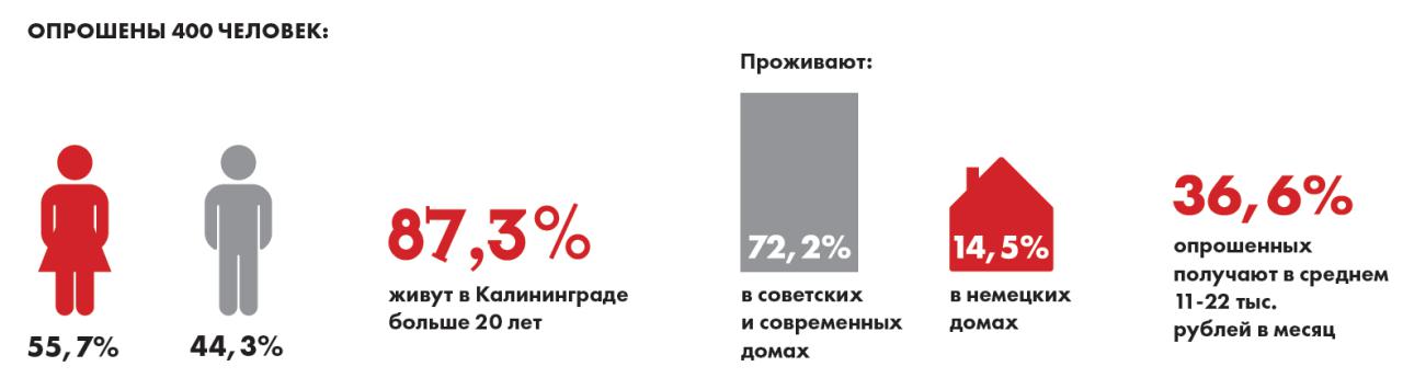 Большинство калининградцев, согласно результатам социологического исследования, все-таки интересуются вопросами застройки, благоустройства и развития городской территории, при этом более равнодушны совсем молодые и уже престарелые люди. Чаще всего горожане узнают об изменениях от знакомых, друзей, из социальных сетей, и треть — из СМИ. Но особое беспокойство вызывает тот факт, что зачастую калининградцы узнают о каких-либо городских преобразованиях, только непосредственно с ними столкнувшись — например, обнаружив перед домом строительный забор.