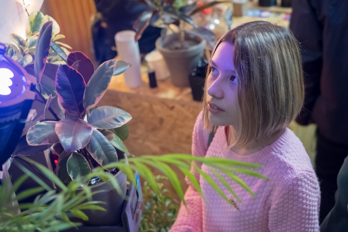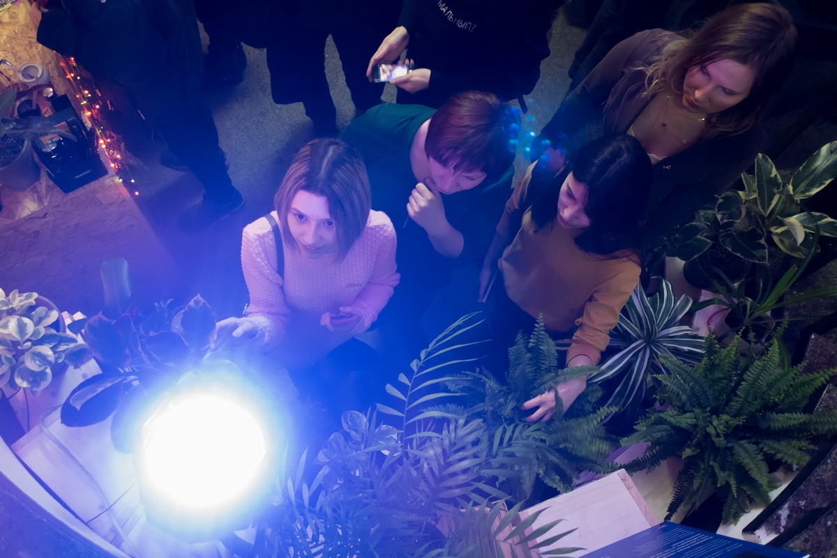 В качестве художественных составляющих были выбраны свет, растения (ведь весь проект изначально связан с растениями) и, конечно, книги.