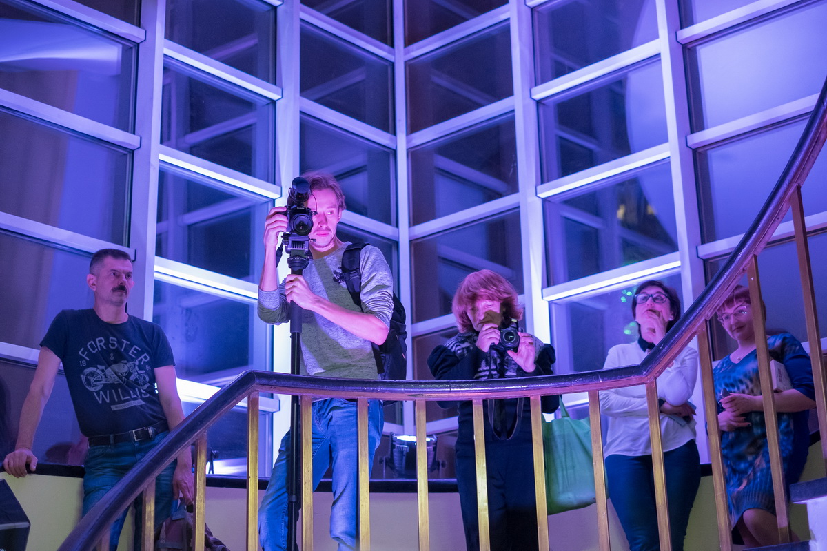 Областная библиотека как локация выбрана по нескольким причинам: она находится в центре, это нетривиальное здание в стиле баухаус необычной конструкции – со стеклянным треугольником фасада, уникальной винтовой лестницей, и конечно не последнюю роль сыграл исторический бэкграунд места.