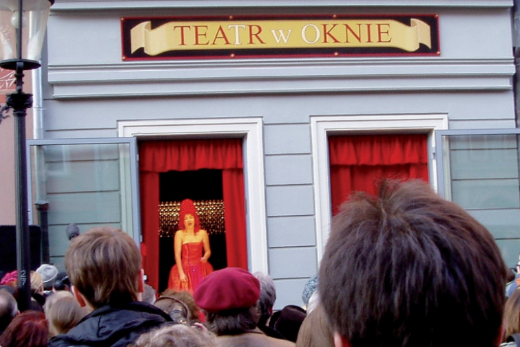 На одной из самых популярных гданьских улиц — Длуга — в одном из типичных каменных домов редкими вечерами сияют два огромных окна. Это площадка «Театра в окне» — экспериментальной труппы, которая имеет три сцены: маленькую внутри здания, уличную, и оконную. Посмотреть репертуар и расписание спектаклей можно посмотреть на их сайте.