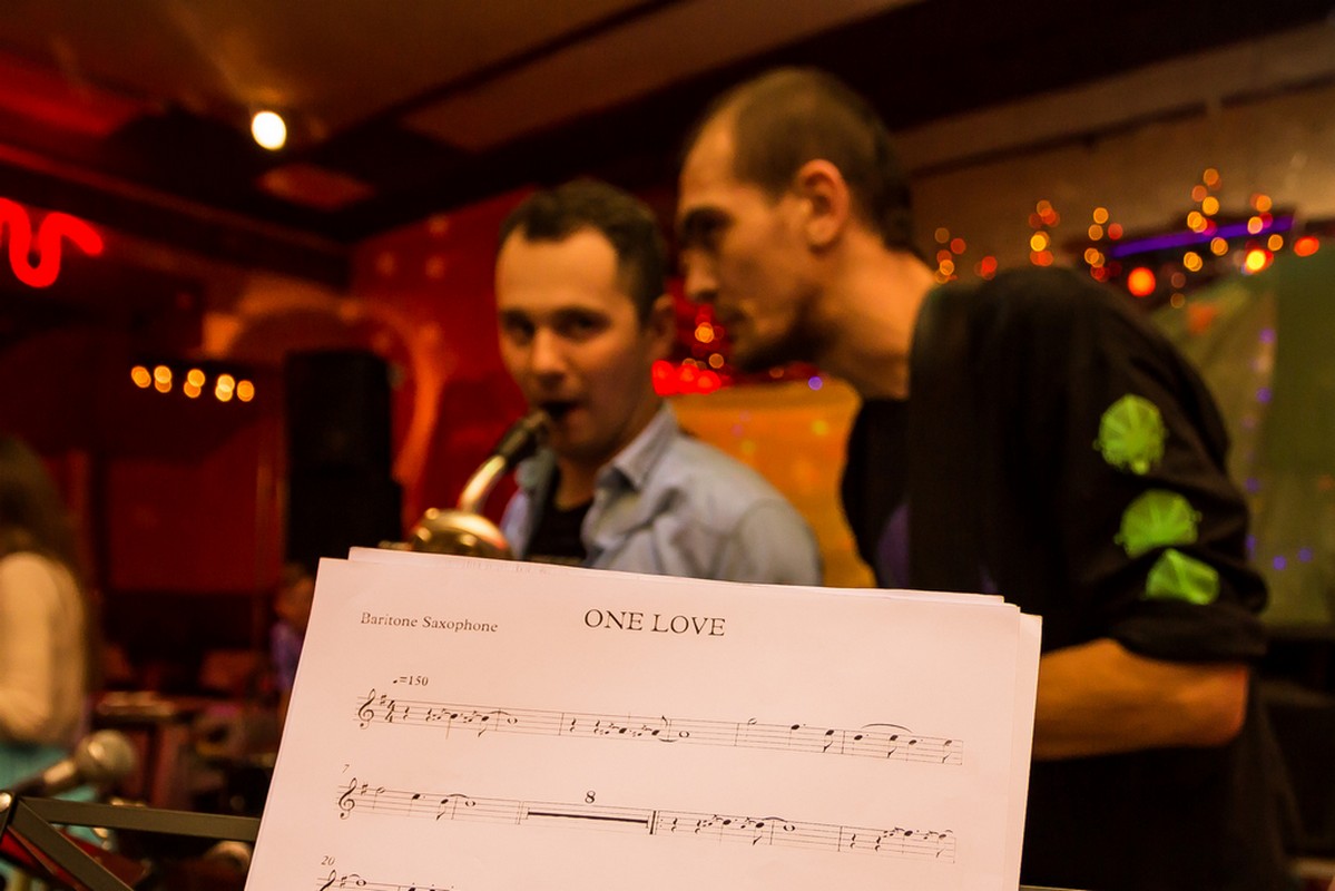 Леди с платочками на фотографиях выше — тоже исполнительницы. Фольклорный ансамбль «Летавица» стал частью очаровательного коллаба с другими музыкантами, так что песни Боба Марли звучали этим вечером в неожиданных интерпретациях. Бэк-вокалистки — тоже любовь! Да и вообще когда столько людей звучат в одном потоке — это ONE LOVE. Здорово, что подключилось столько музыкантов и случилось столько взаимодействий. Во всём этом мы даже углядели потенциал для будущих регги-вечеринок. Да будет так!