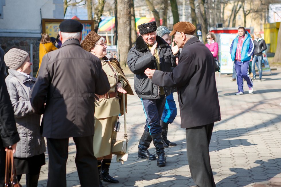 Рядом со мной бабушка укутывает внучку в шарф: «Праздник нам очень понравился, но нужно бежать по делам. Здорово придумана программа – здесь столько всего, что только и успевай посмотреть и поучаствовать. Правда, музыка меня немного смутила, думаю, такое больше понравится взрослым». На импровизированную сцену время от времени выходит ансамбль в казачьих шапках и с балалайками, который исполняет национальные казачьи песни. Перед артистами вальсируют пенсионеры.