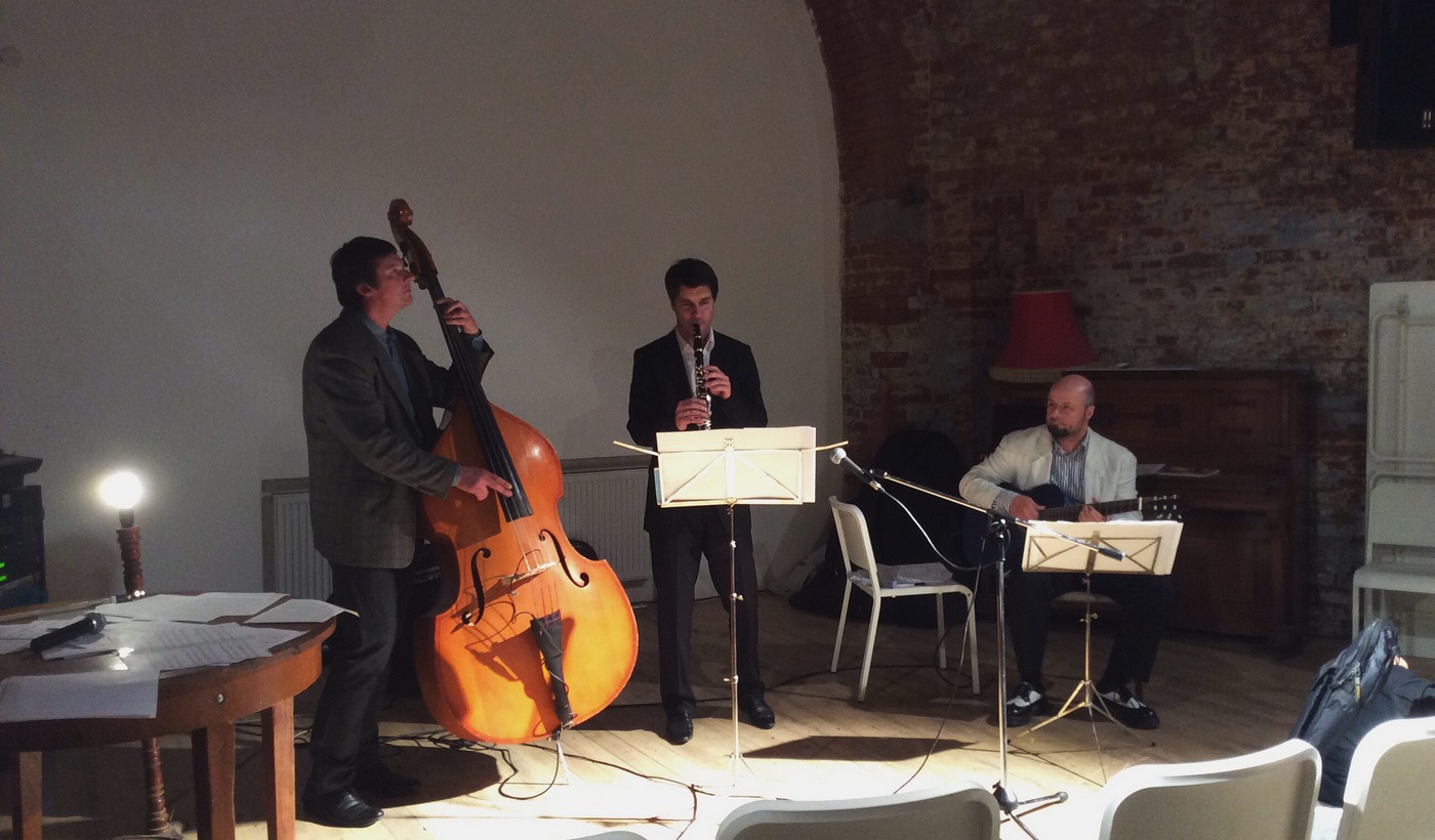 Его сменяют музыканты с гитарой, флейтой и контрабасом. Еврейскую музыку они никогда раньше не играли. Организатор вечера и председатель общины Виктор Шапиро открывает музыкальную программу низким баритоном. Звучит по-любительски, но душевно. Все дальнейшие композиции исполнялись без вокального сопровождения. Под еврейские мотивы хочется танцевать, но присутствующие остаются на своих местах. Звучит предположение, что танцы будут, когда будет вино.