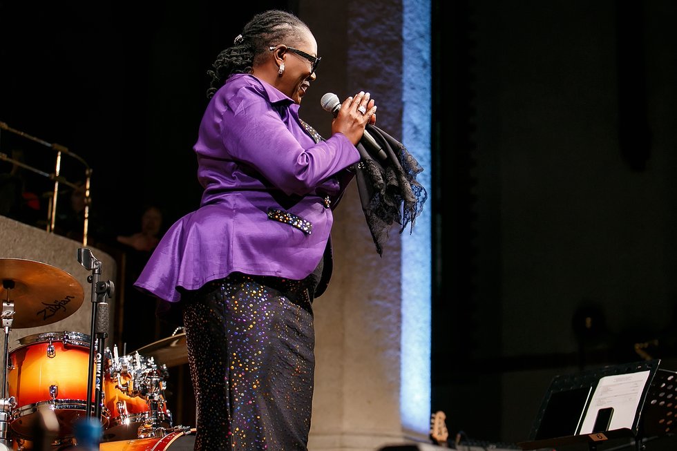 Когда на сцене появилась Текора Роджерс, все заискрилось от ее улыбки. Исполнительница обратилась к залу со словами, что выступает сегодня здесь с большим удовольствием, и выразила надежду, в следующий раз будет лучше говорить на русском. И анонсировала программу – немного спиричуэл, госпел и традиционный джаз – все в лучших традициях выступлений Текоры. Стоит отметить, что Текора много общалась с залом, перед каждой композицией рассказывала историю песни и ассоциации с ней. Так, например, Текора спела любимую песню ее мужа.