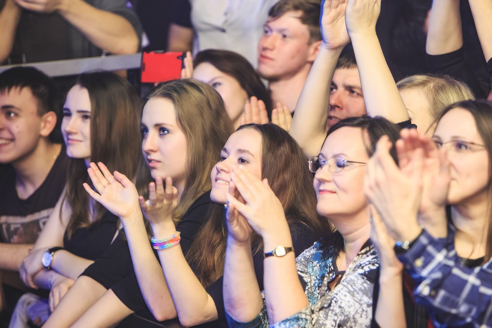 На концерт «Крематория» мы, к своему стыду, опаздываем, поэтому в зал удается зайти к концу первой песни. Бессменный фронтмен группы Армен Григорян поет, что что-то будет хорошо, а я не скрываю удивления, оглядывая зал. В привычные проходы на уровень выше танцпола поставили дополнительные вип-зоны с мягкими диванами, но, несмотря на это, места в зале нет. Уже первую песню зрители поют хором, порой перекрикивая самого вокалиста. Руки каждого второго тянутся вверх, и в едином ритме оглушительно хлопают музыкантам. Чувствую себя самой маленькой: большая часть пришедших – ровесники моих родителей, некоторым составляют компанию их взрослые дети.